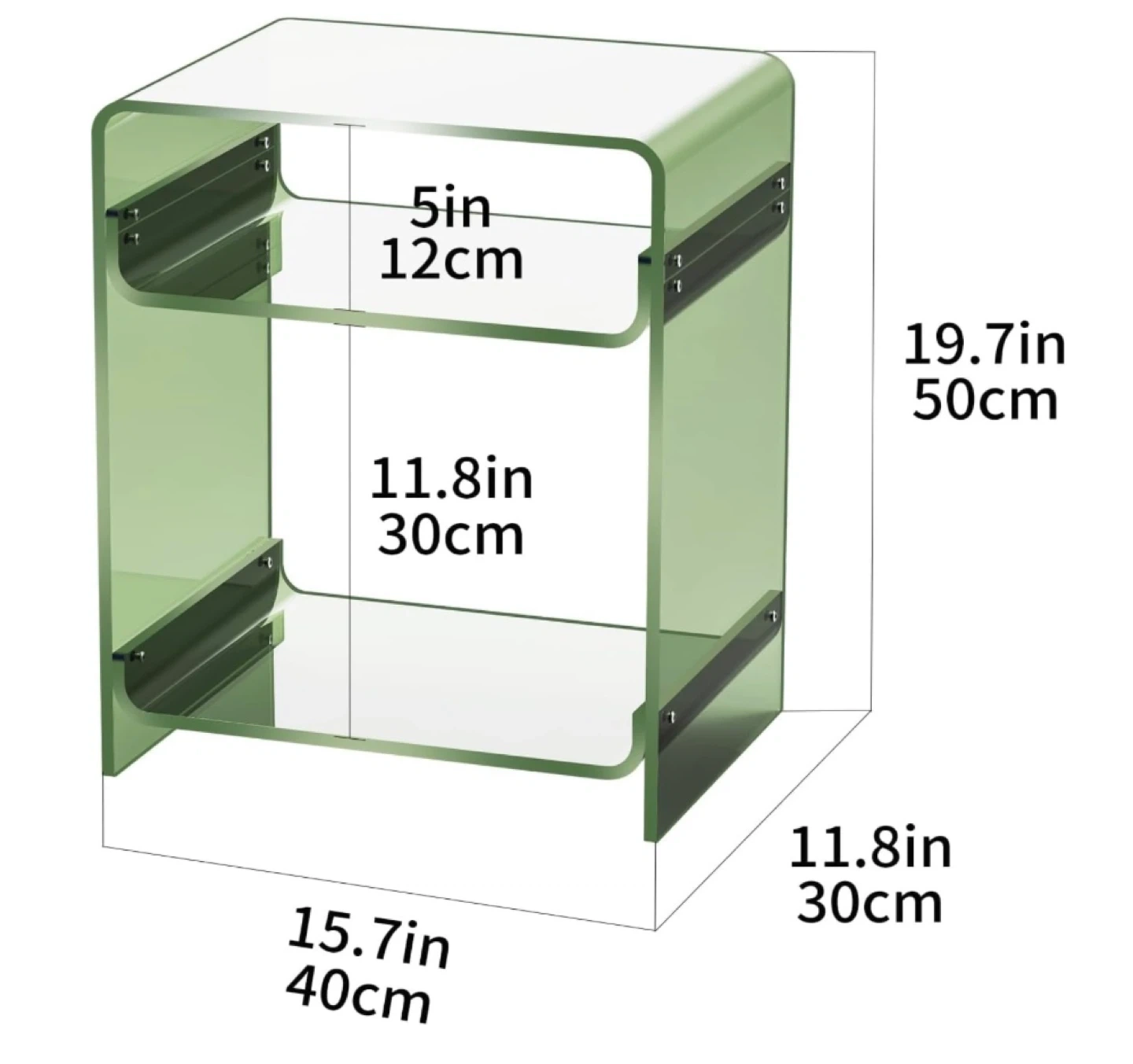 Brighten up your space with this brand new, green acrylic side table, featuring a modern design with two shelves, perfect for adding a pop of colour and functionality to any room. Never taken out of the box, this unique piece is ready to assemble and become a stylish addition to your home decor!