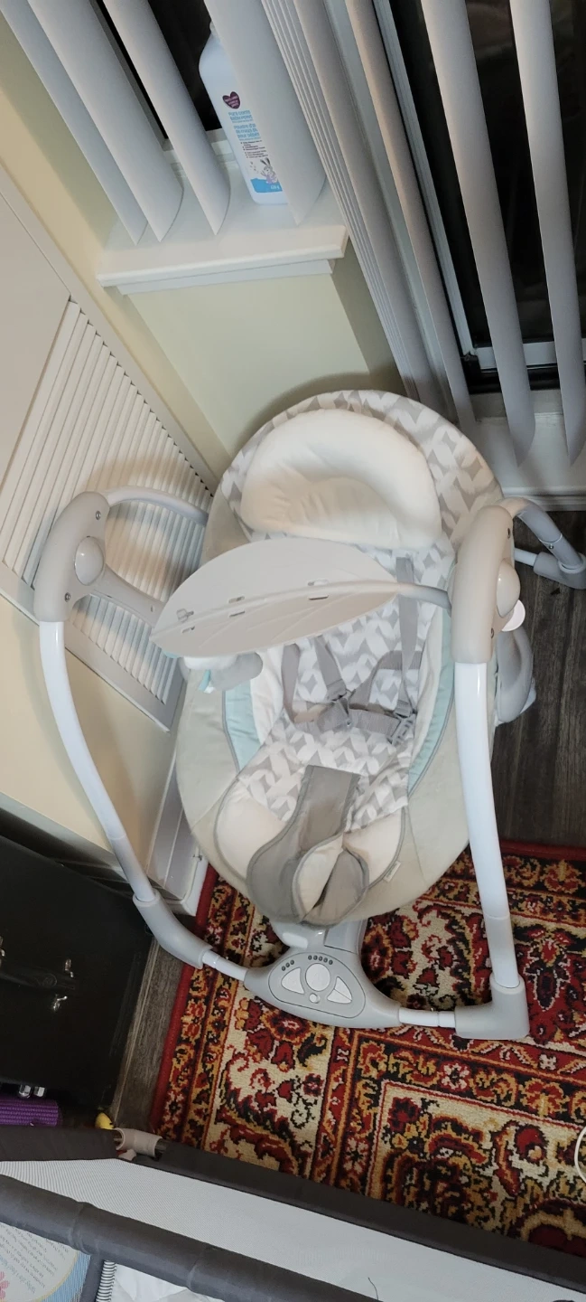 Ingenuity baby swing offers multiple soothing motions and speeds to calm your little one. It features a comfortable seat with a soft head support and a cute plush toy.