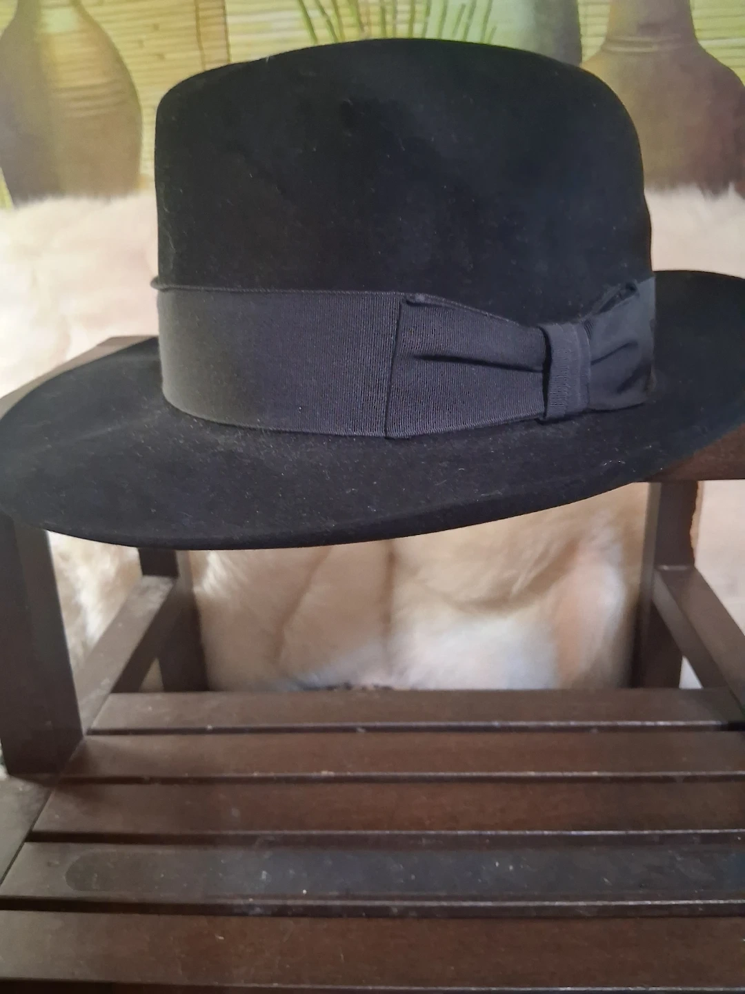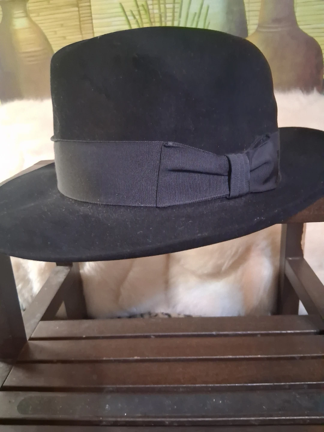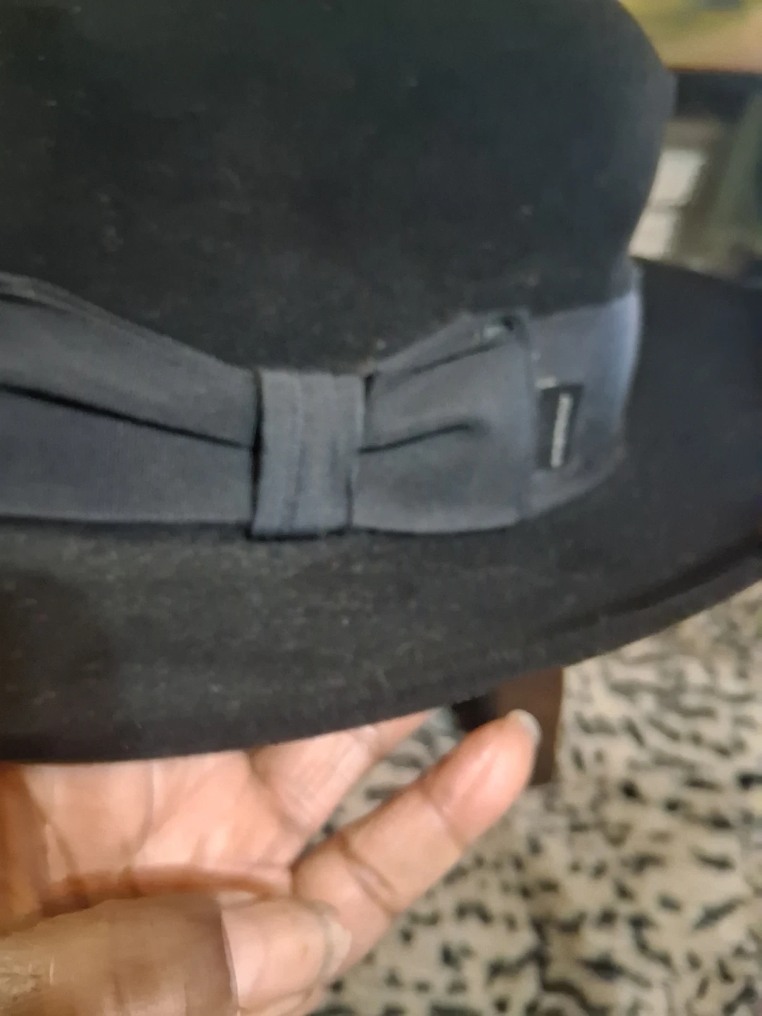 Selling a classic black fedora hat! It's in great condition and ready for a new owner. Perfect for adding a touch of style to any outfit
