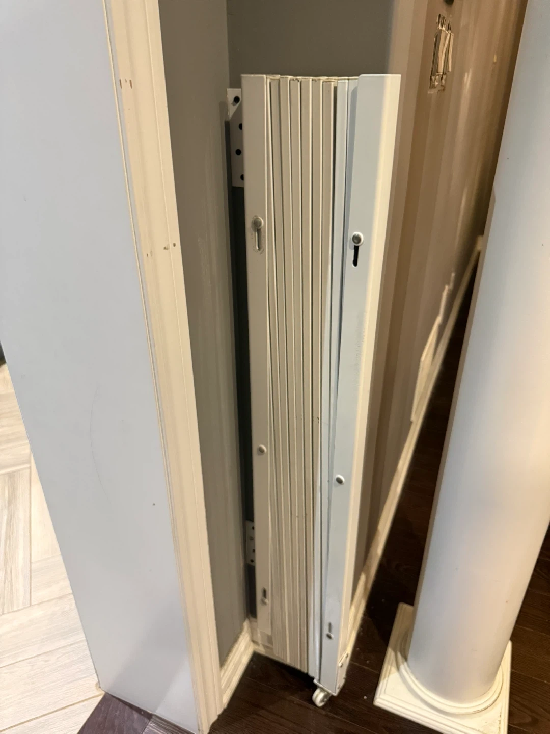White Expandable Accordion Wall Mount Metal Gate 7.5-64 inch