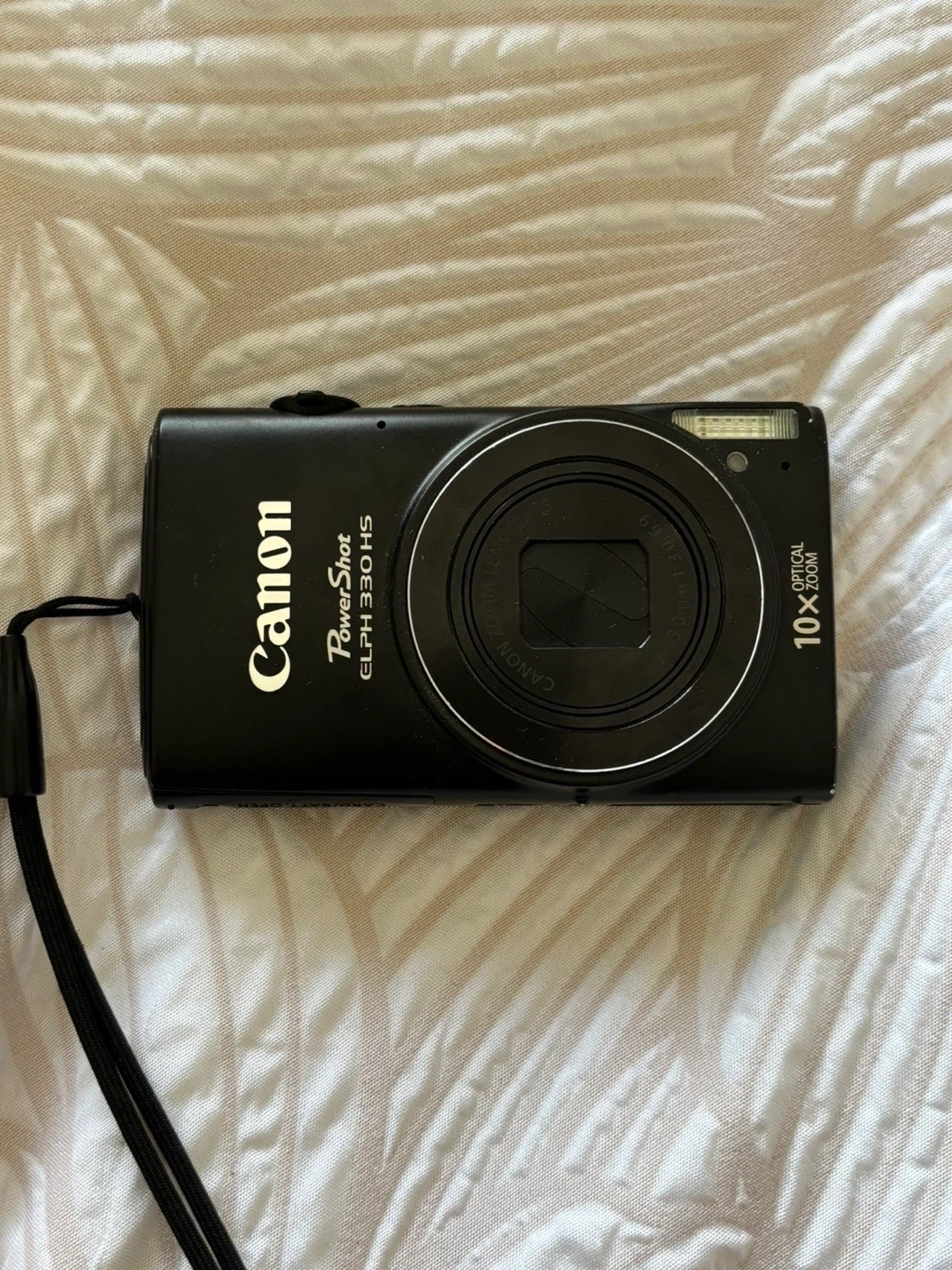 This is a black Canon PowerShot ELPH 330 HS digital camera.
