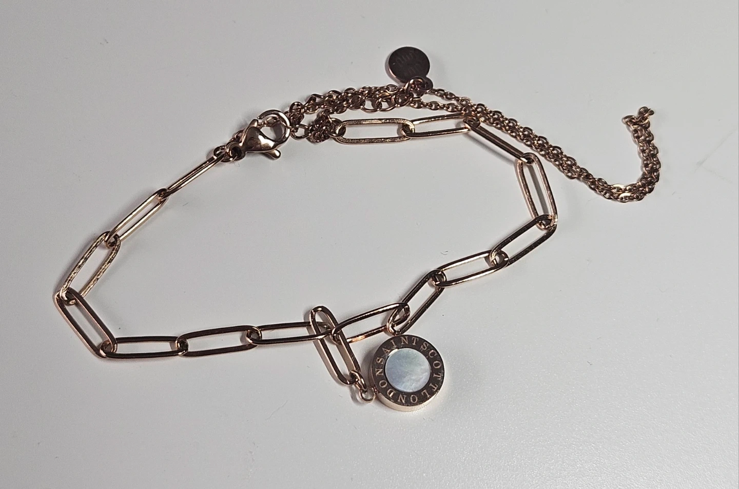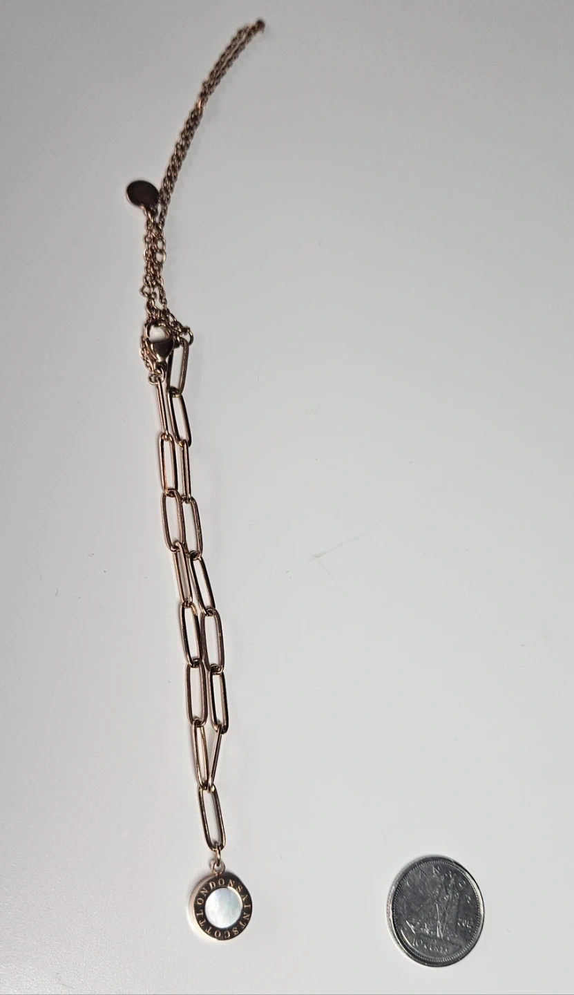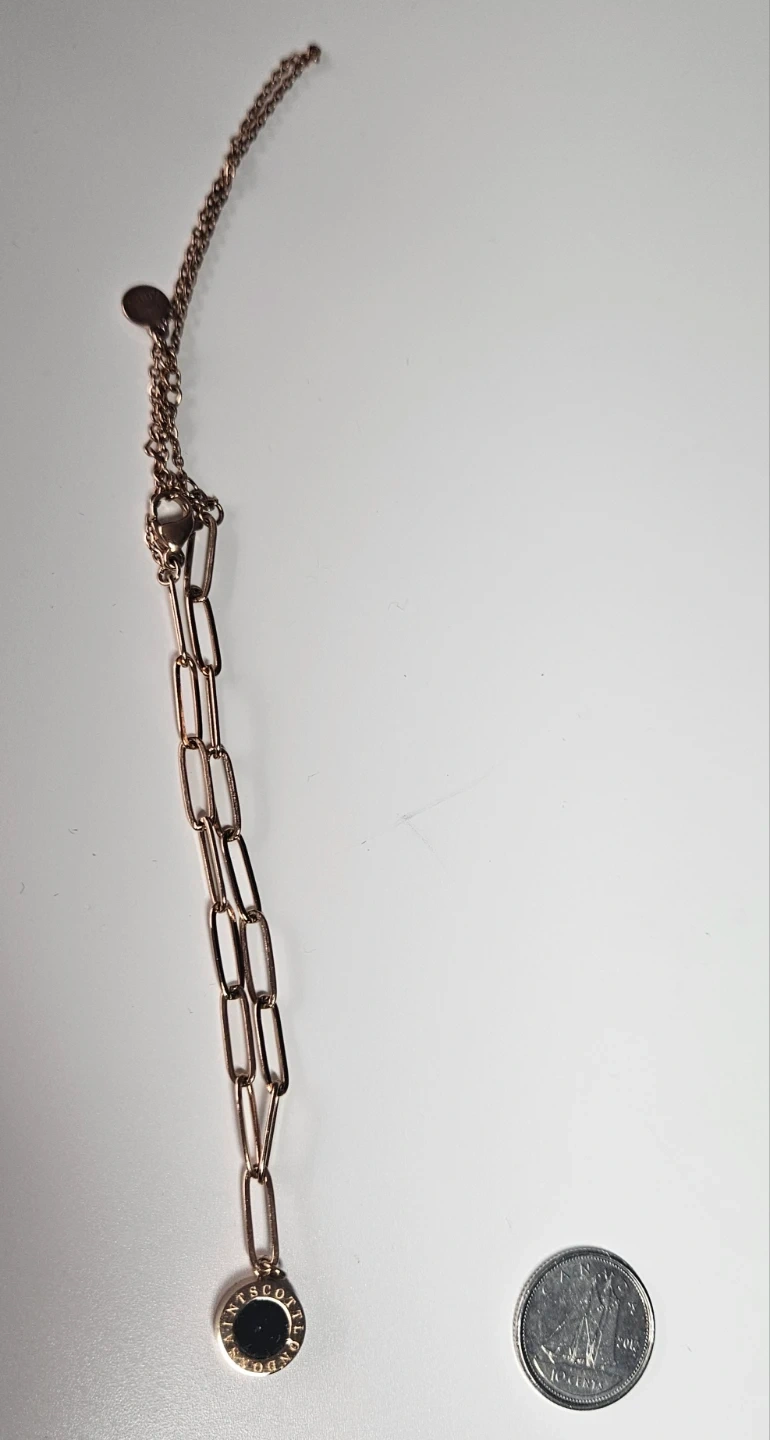 This unique bracelet features a reversible pendant! One side is sleek black and the other is classic silver.