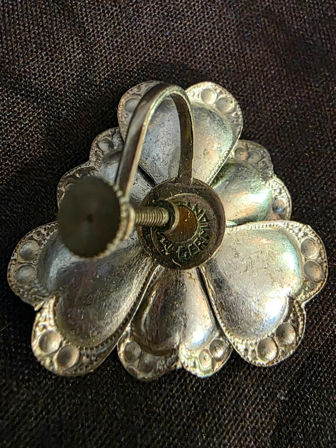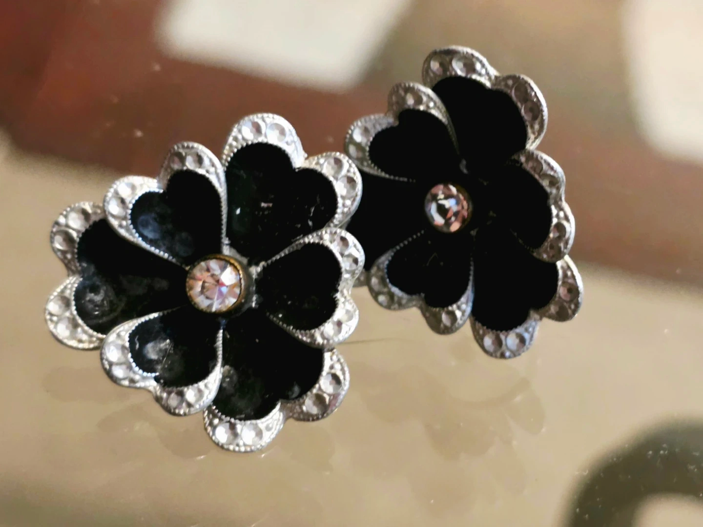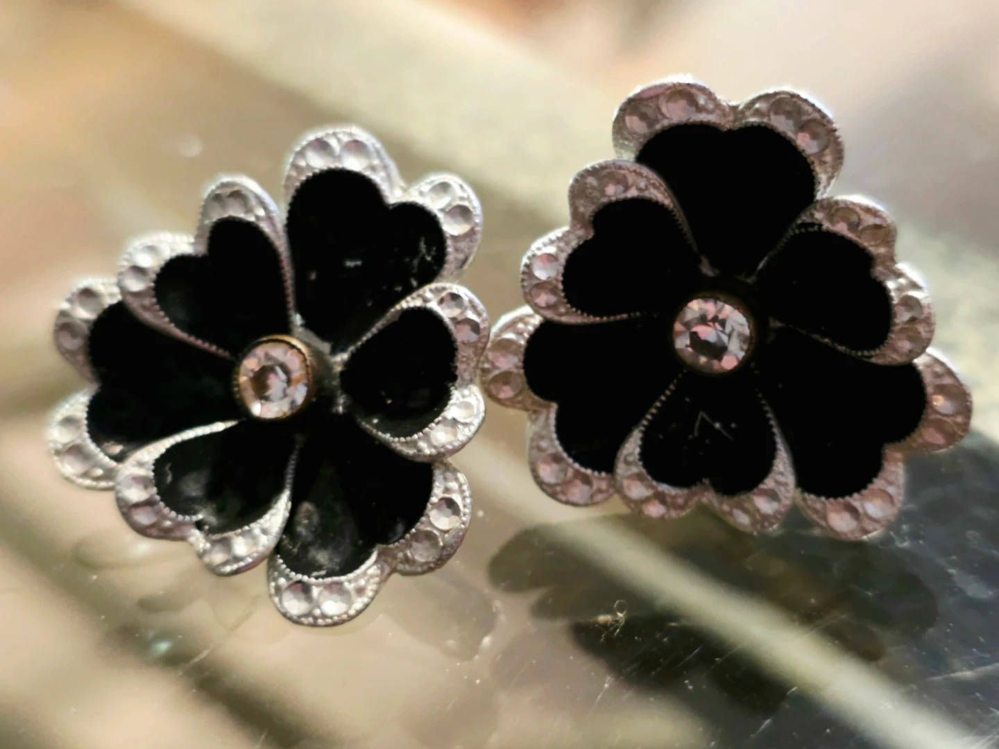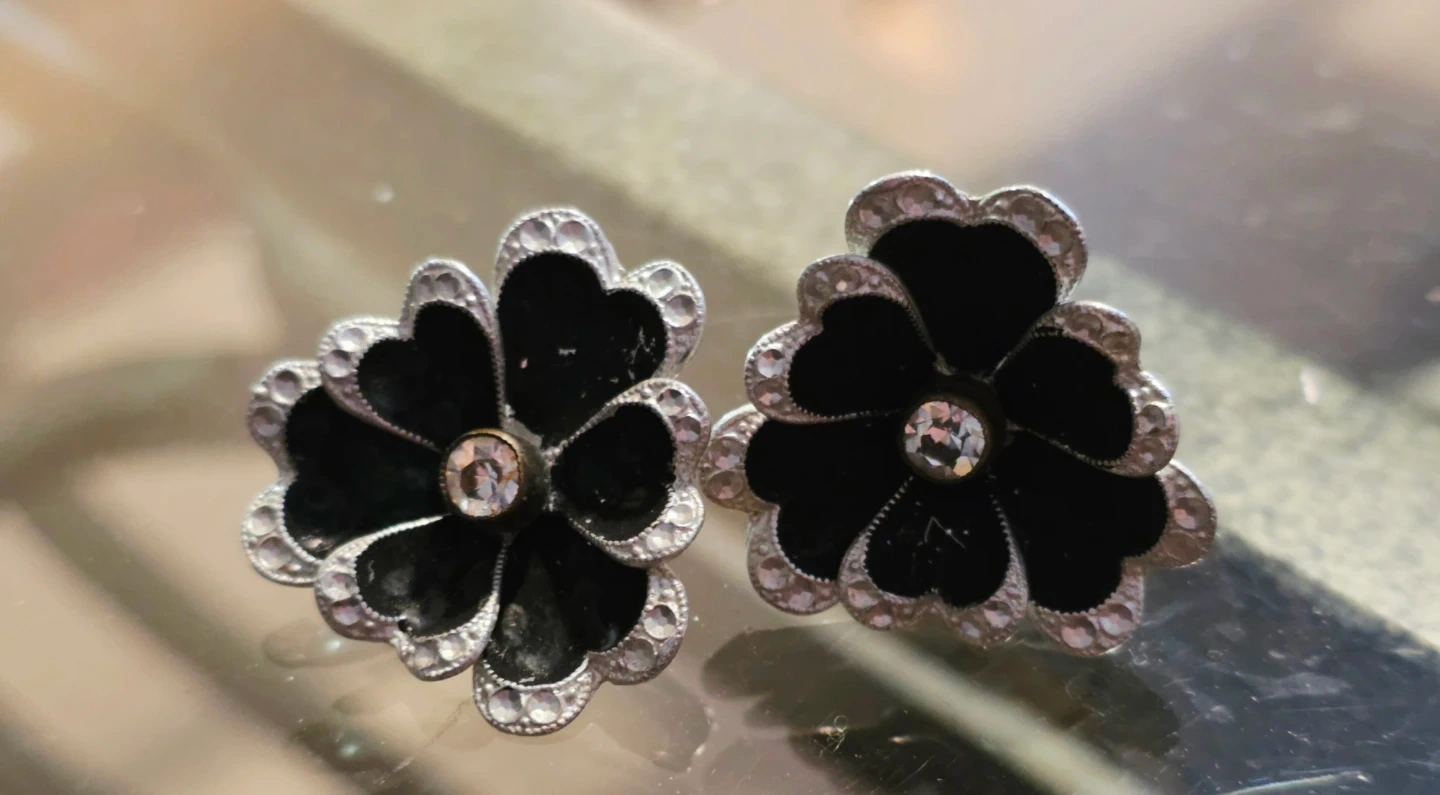 🖤 GERMAN VINTAGE! Black Flower Screw-Back Earrings 🖤