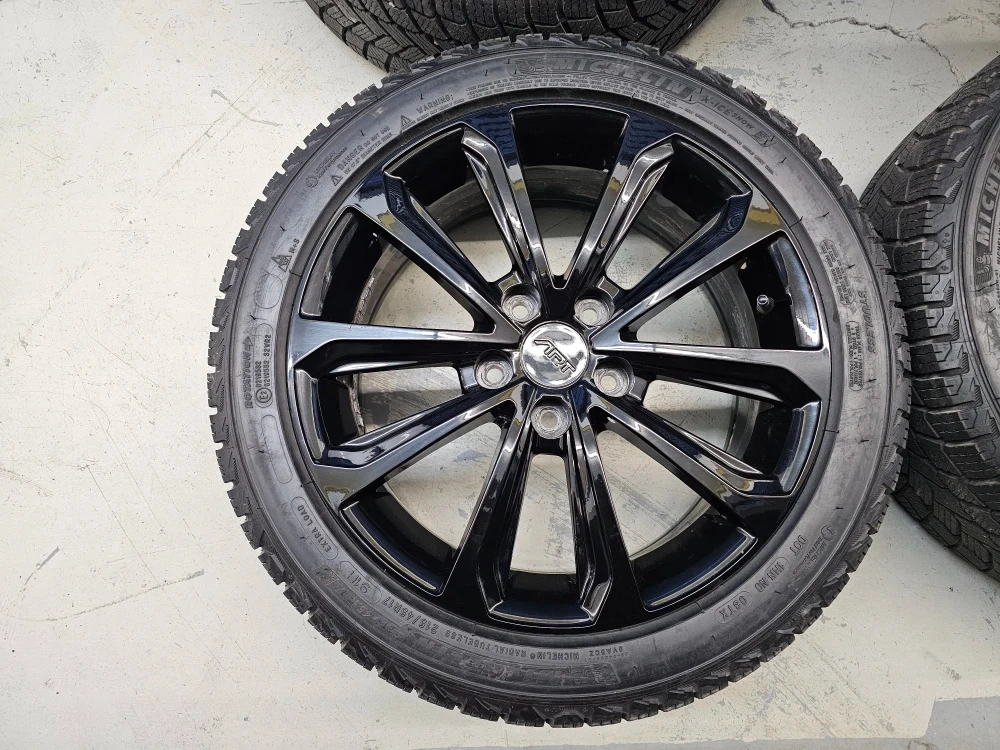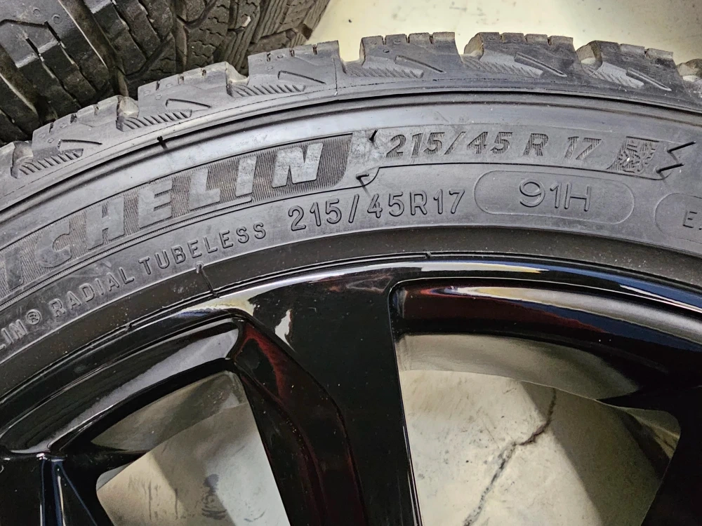 Set of 4 almost brand new 17" alloy rims and Michellin X-ICE snow tires on them 215/45/R17 used on Toyota matrix. Rims and tires are almost brand new, no issues. Lots of thread left on tires