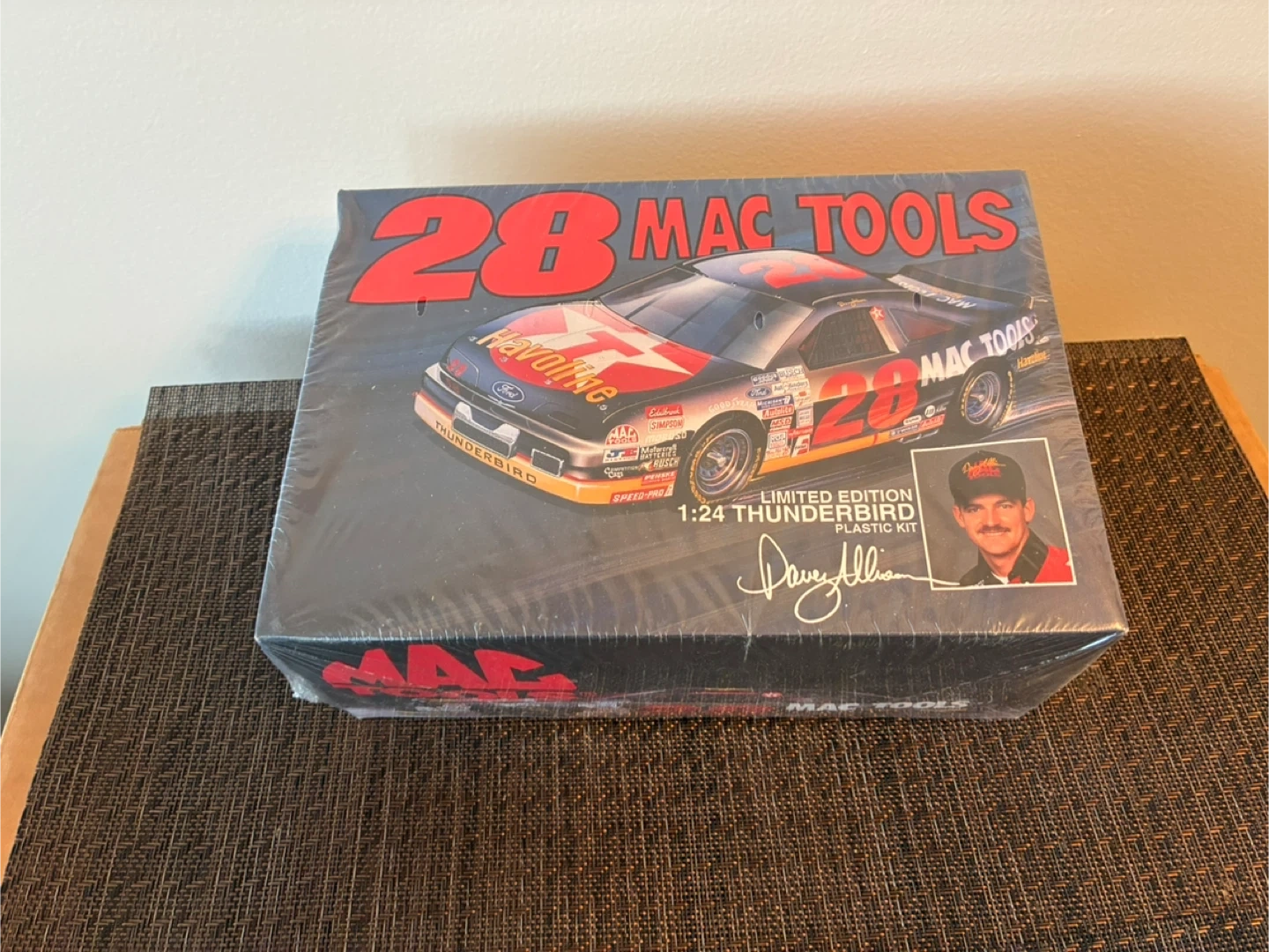 10Selling a limited edition 1:24 scale Thunderbird plastic kit by Monogram, featuring the MAC Tools 28 Davey Allison car. This kit includes 1 unassembled model kit. It's still in its original packaging!