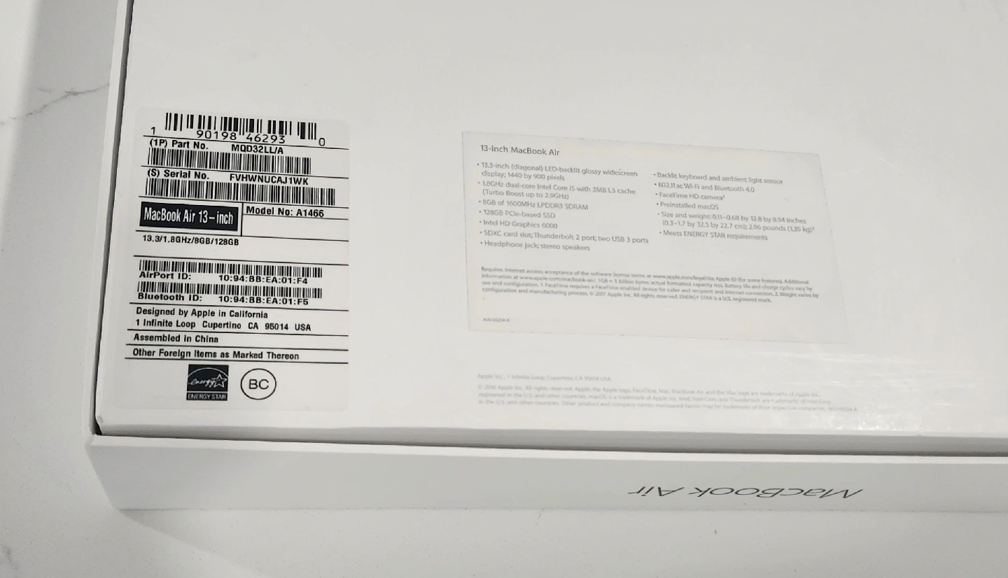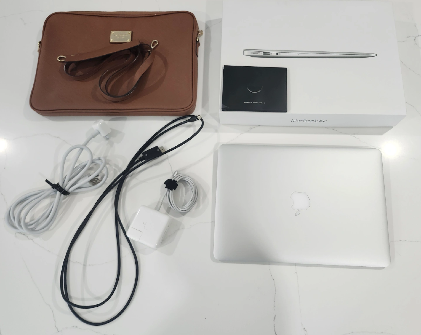 462Selling a MacBook Air 13-inch. The model number is MQD32LL, 128 GB of storage. Comes with the original box, documents HDMI Cable, adapter with apple extensior cord. It comes with a Michael Kors laptop bag with a strap. A few specs: (The rest can be found or Apple website with model number MQD32LL) -1.8GHz dual-core Intel Core i5. Turbc 3oost up to 2.9GHz, with 3M7 shared L3 cache -128GB PCIe-based SSD - Comes with 8 GB of 1600 MHz LPDDR3 RAM. The battery condition is excellent, It has peen factory reset and is ready to use, I have the proof of payment as well.