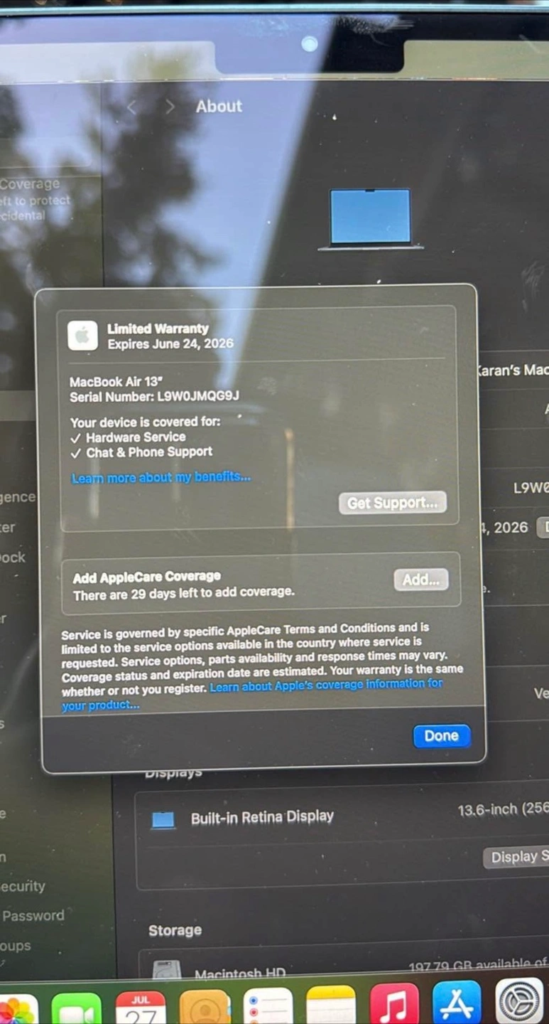 1 month old Selling a MacBook Air 13 inch ( Midnight ) It's in like-new condition. 16GB RAM 256 GB Storage The limited warranty expires June 24, 2026