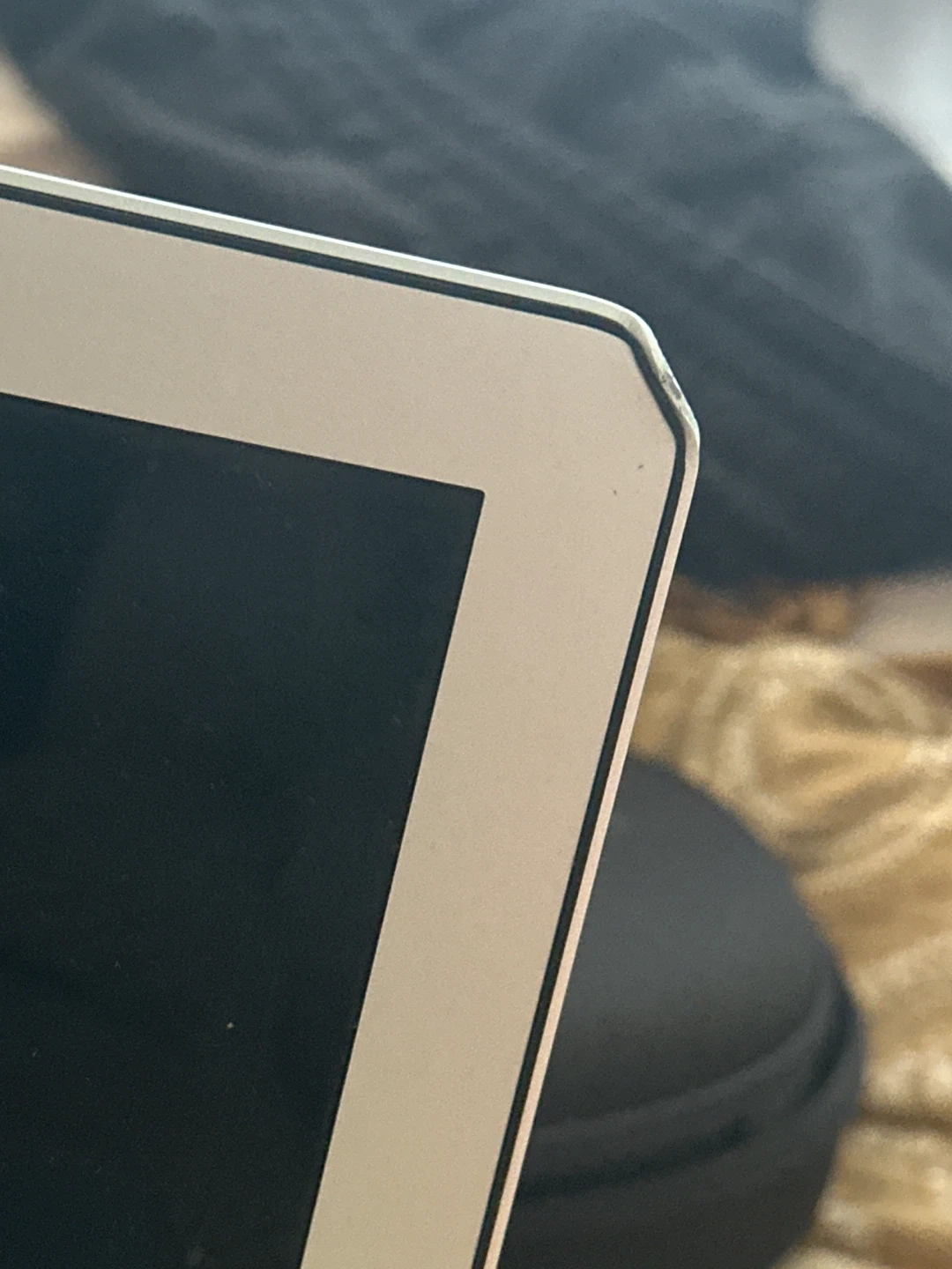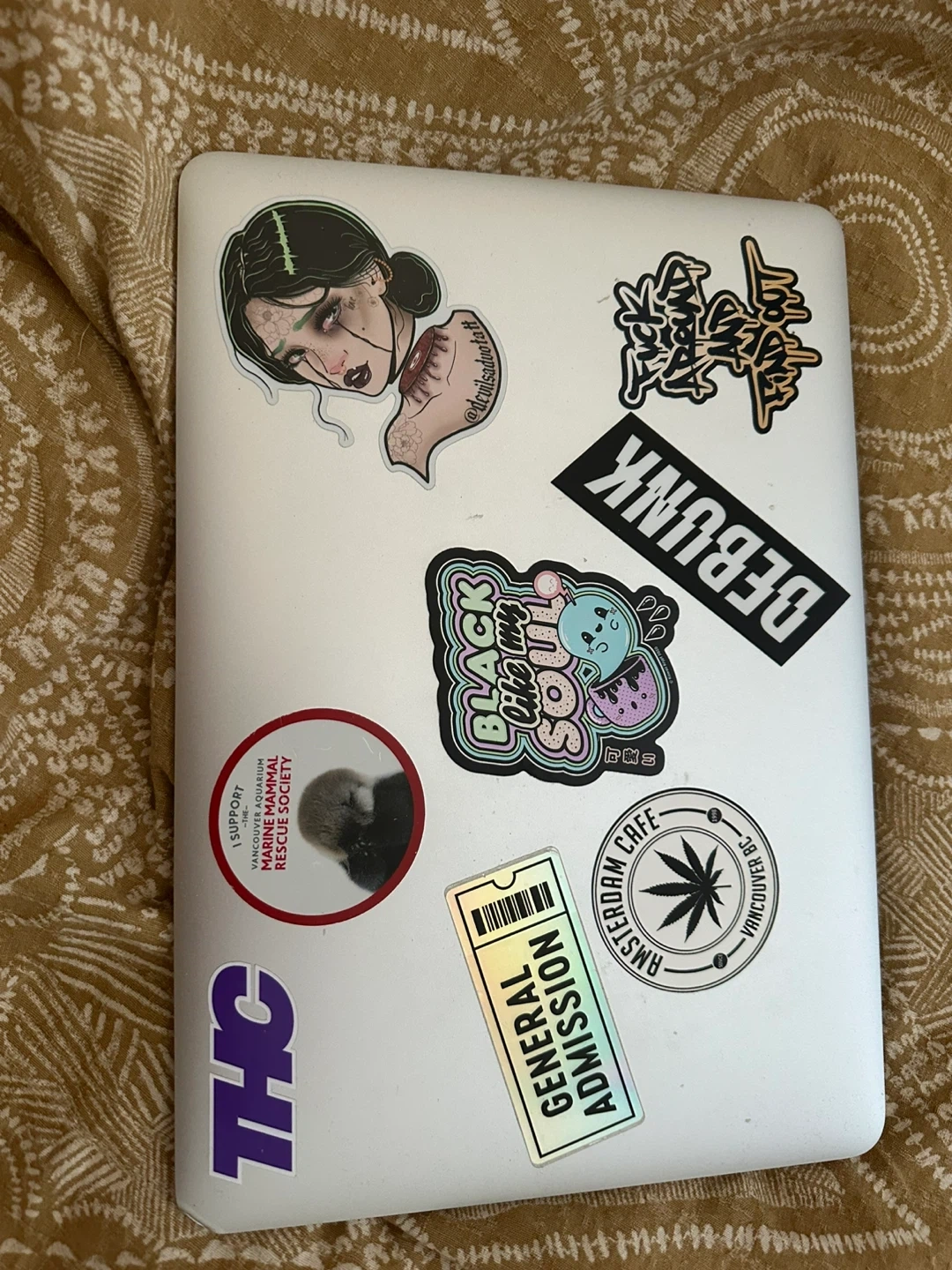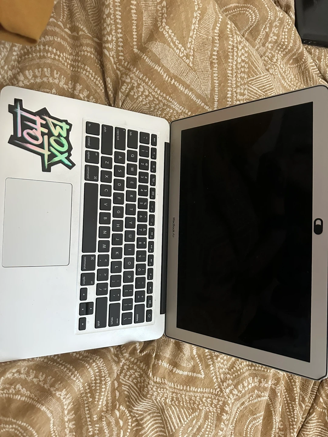 Selling a Macbook Air. It has a few stickers on it, which I can take off. Message me if you have any other questions. It has a little dent on the corner of it from being dropped once