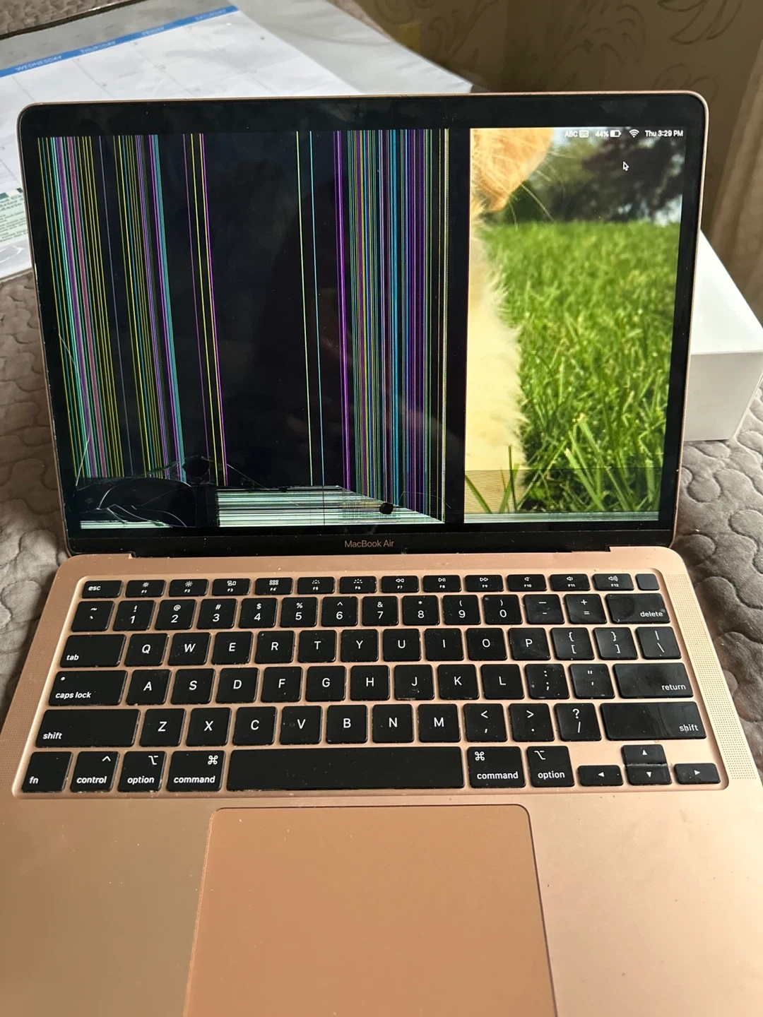 510Selling a MacBook Air in rose gold, but it has a cracked screen. Comes with the original box.