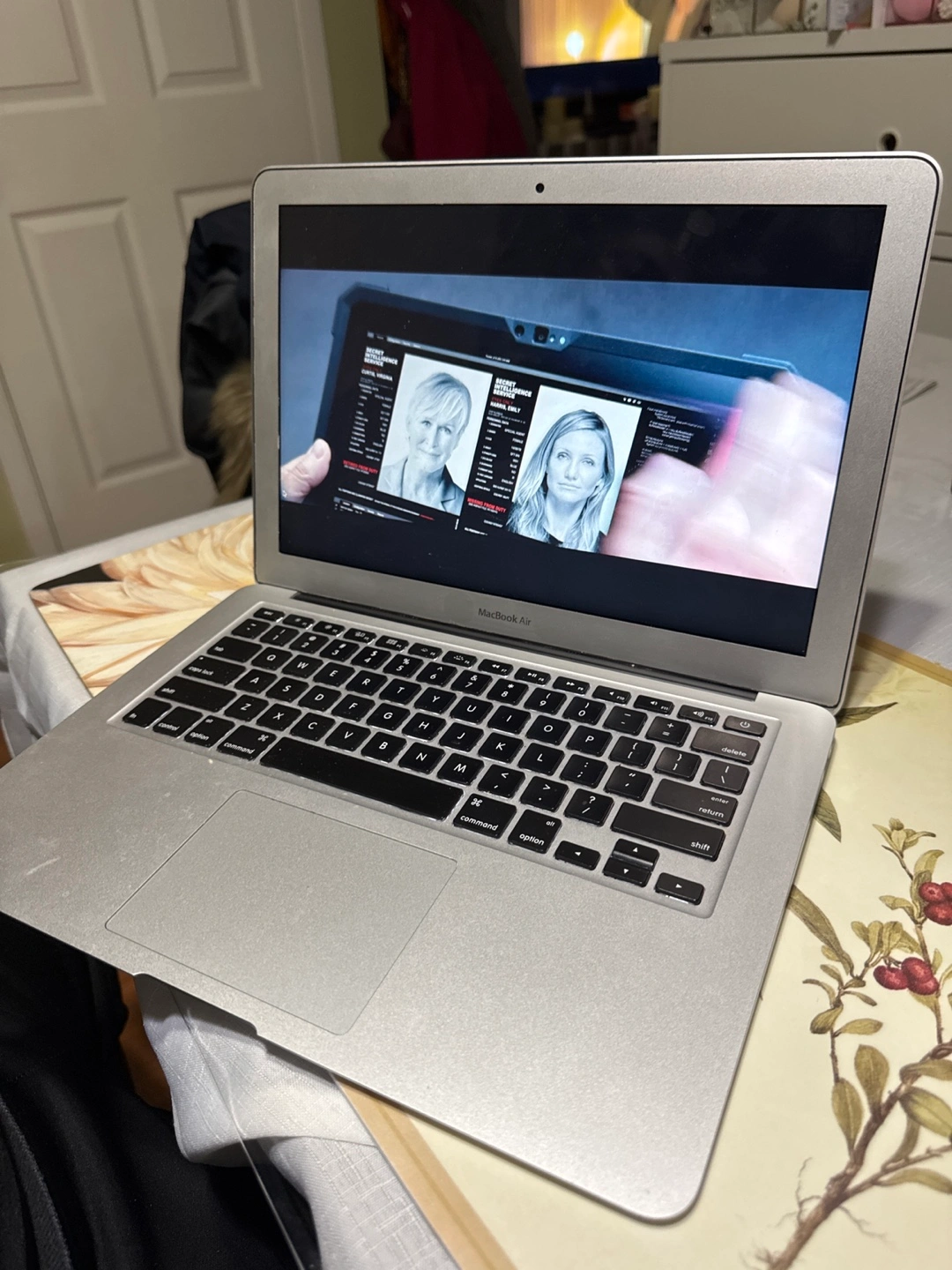 Silver MacBook Air laptop. Good condition. Includes charger.