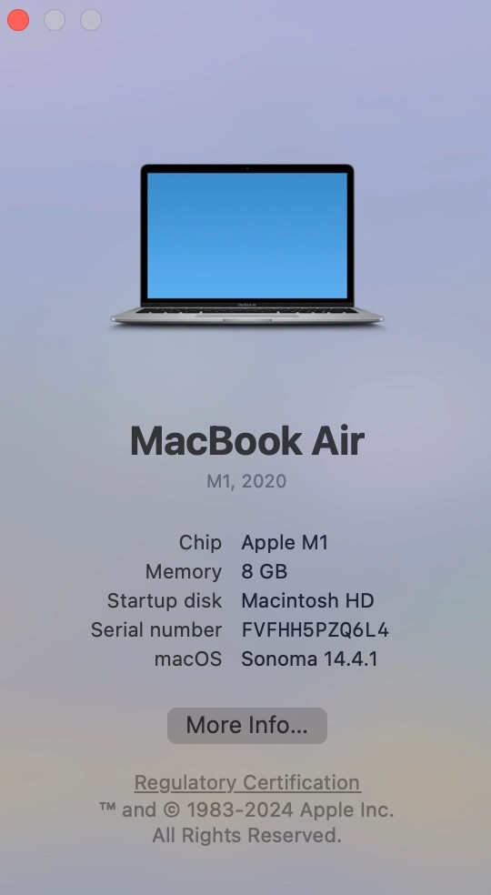13MacBook Air M1 13.3 inch (model 2020) - Colour Space Grey - 8GB memory 256GB SSD Original charger and case included.
