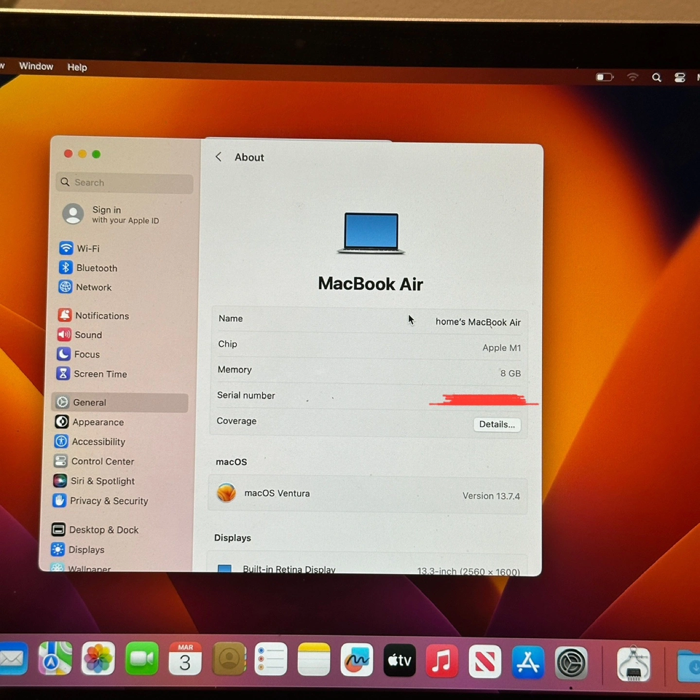 155Apple MacBook Air 13 inch - Apple M1 Chip Condition: 8/10 (Minor scratches) With Box and all accessories (Charger & Type C cable) Processor: Apple M1 Chip Ram: 8Gb unified memory Storage: 512 GB SSD CPU: 8 core GPU: 8 core Touch ID Backlit Magic Keyboard Disclaimer: - Only Cash - Only Pickup at Birchmount Danforth intersection - 6 days checking warranty also - PRICE IS FIRM