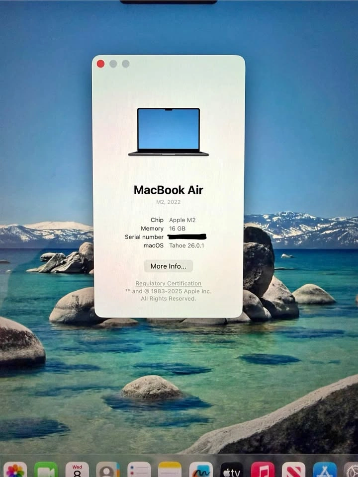 10Selling my barely used 2022 MacBook Air (M2 chip) in Midnight colour. It’s in mint condition — no scratches, dents, or issues of any kind. Battery health is 100%, and it comes with the original box and charger. Specs: - 13.6” Liquid Retina Display - Apple M2 Chip (8-core CPU, 8-core GPU) - 16GB Unified Memory (RAM) - 256GB SSD Storage - Colour: Midnight