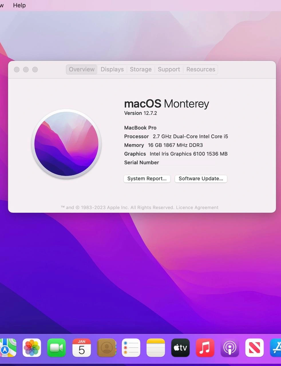 10Selling my laptop I have been using it since 2019. There are signs of use on the case, but everything works perfectly, this guy has a lot of life left in him. MacBook Pro (Retina, 13-inch, Early 2015) Processor - 2.7 GHz Dual-Core i5 Unified Memory - 16GB Storage - 256GB PCIe-based flash storage Intel Iris Graphics 6100 MagSafe 2 power port Two Thunderbolt 2 ports (up to 20 Gbps) Two USB 3 ports (up to 5 Gbps) HDMI port 3.5 mm headphone jack SDXC card slot macOS Monterey MagSafe 2 Power Adapter