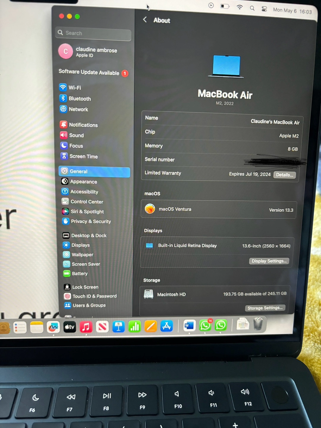 MacBook Air M2 2022 256GBSSD 8GB Unified Memory 13.6-inch Color- Midnight