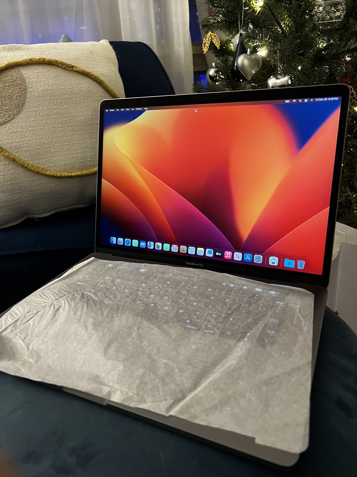 120MacBook Pro in a mint condition 15.4 inch With Touch Bar Gift USB 7 in 1 adapter worths $100 No dents or scratches Used for 1 year / I used to work on iMac Battery cycle count 241 (like new) 2.9 GHz Quad-Core Intel Core i7 Intel HD Graphics 630 1536 MB 16 GB 2133 MHz LPDDR3 Storage 500gb SSD macOS Ventura I am the original owner With original charger and box Wrapped with it’s original packaging