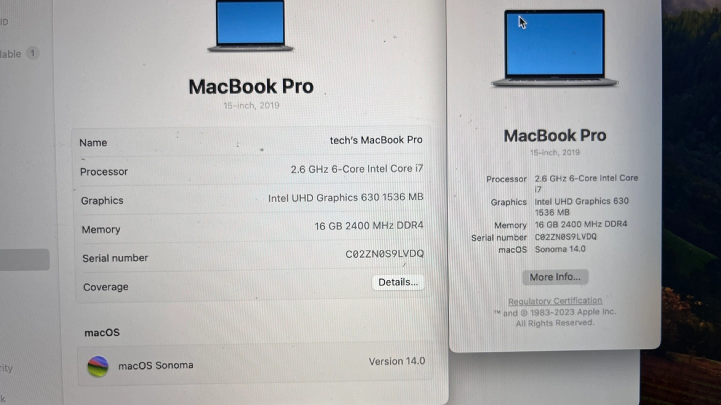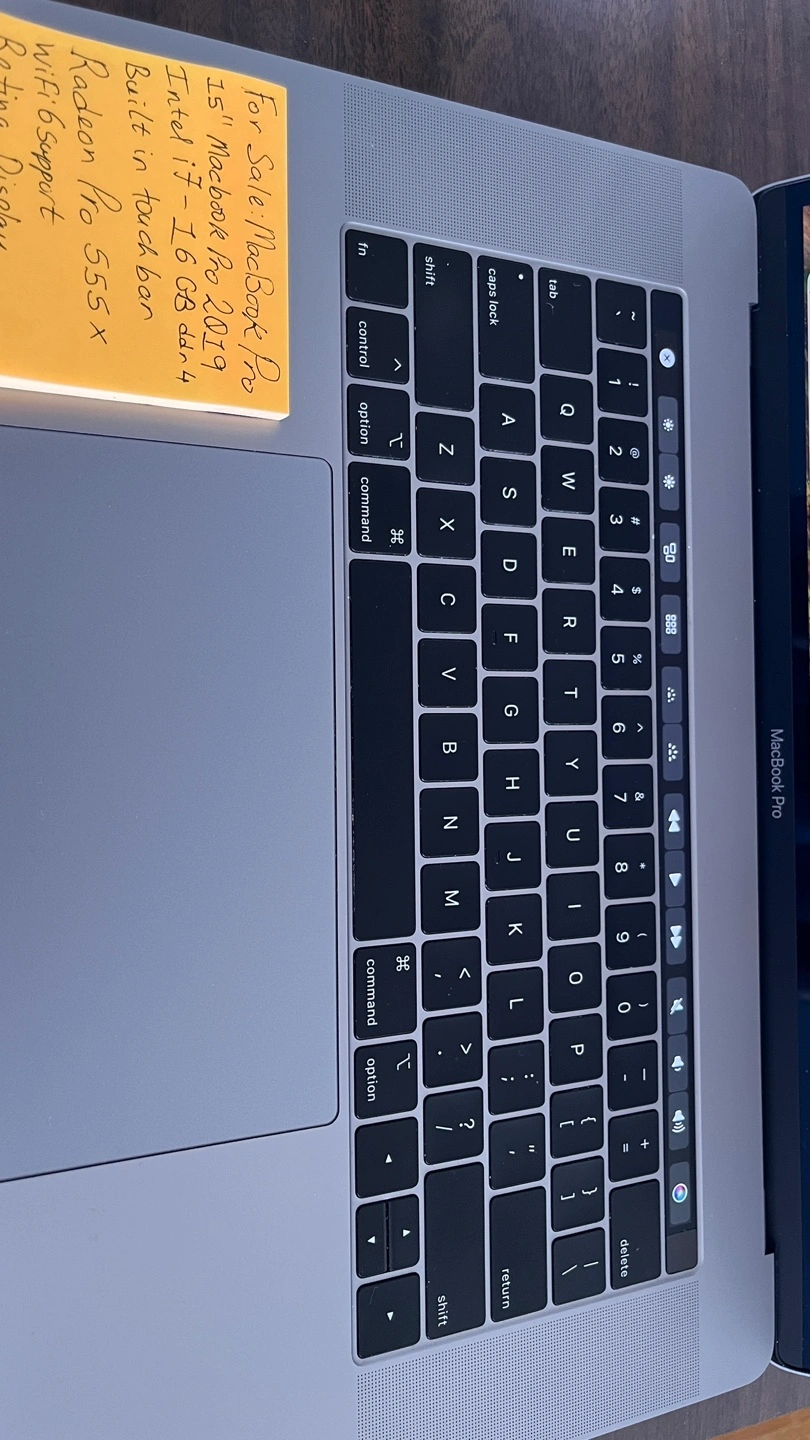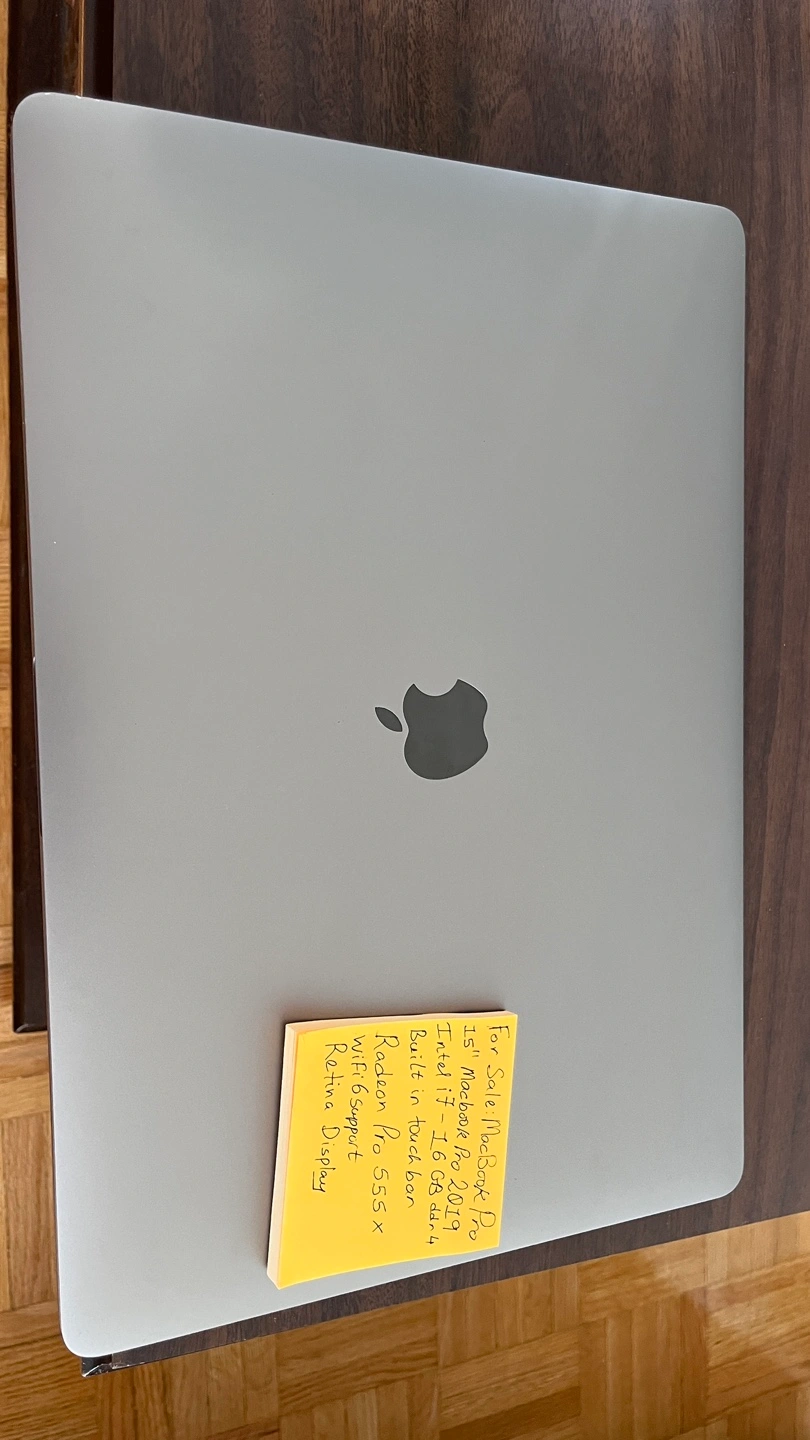 1015-inch MacBook Pro. Built in 2019. Intel i7 processor. 16 GB ram. Radeon Pro 555x graphics card. macOS Sonoma.