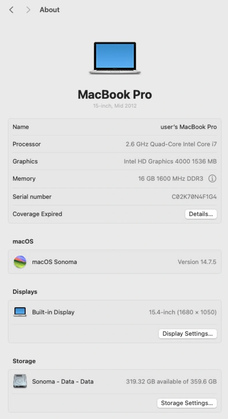 5MacBook Pro 15” (Mid 2012) - Powerful & Reliable! • 2.6GHz Intel Core i7 • 16GB RAM • 500GB SSD • Anti-glare High Resolution Display • Battery cycle count: ~414 • Includes original Apple MagSafe charger This MacBook is in excellent working condition — perfect for everyday use, media editing, or as a backup machine. The anti-glare screen and upgraded RAM/SSD make it super responsive.