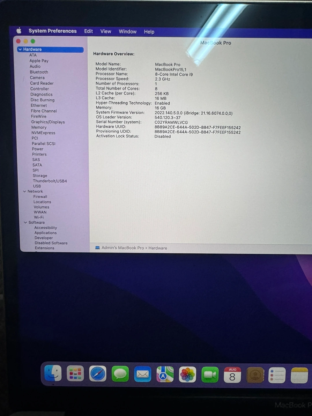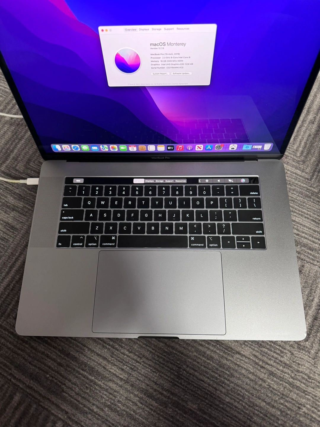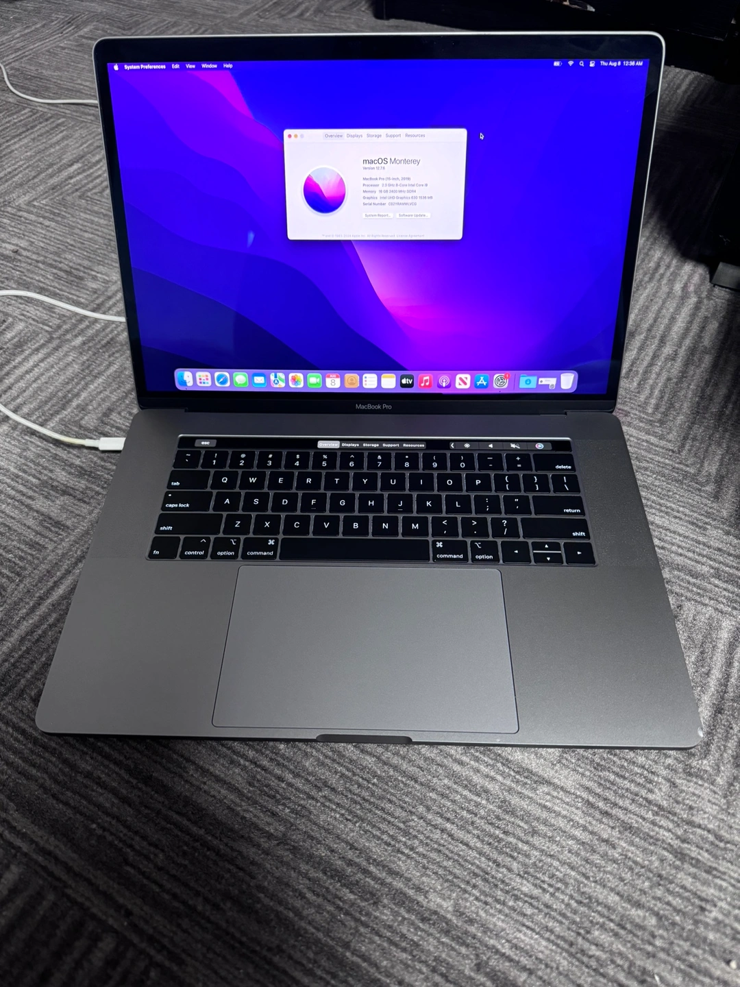 13Apple Macbook Pro 2019 15” with TouchBar 512GB SSD 16GB RAM Intel core i9 Processor Radeon Pro 560X and Intel UHD Graphics 630 graphics Space Grey Comes with a power adapter and cord only dont have the box on me. Battery health is normal and runs perfect (126 cycles) Device is in mint like brand new condition just a few light scuffs and scratches.