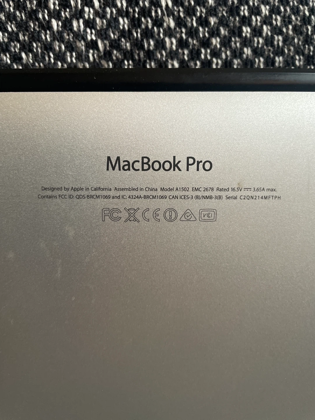 63Selling a MacBook Pro late 2013. Apple original charger included. No cracks on the screen, no dents, very good condition. Re set back to factory. Model A1502.