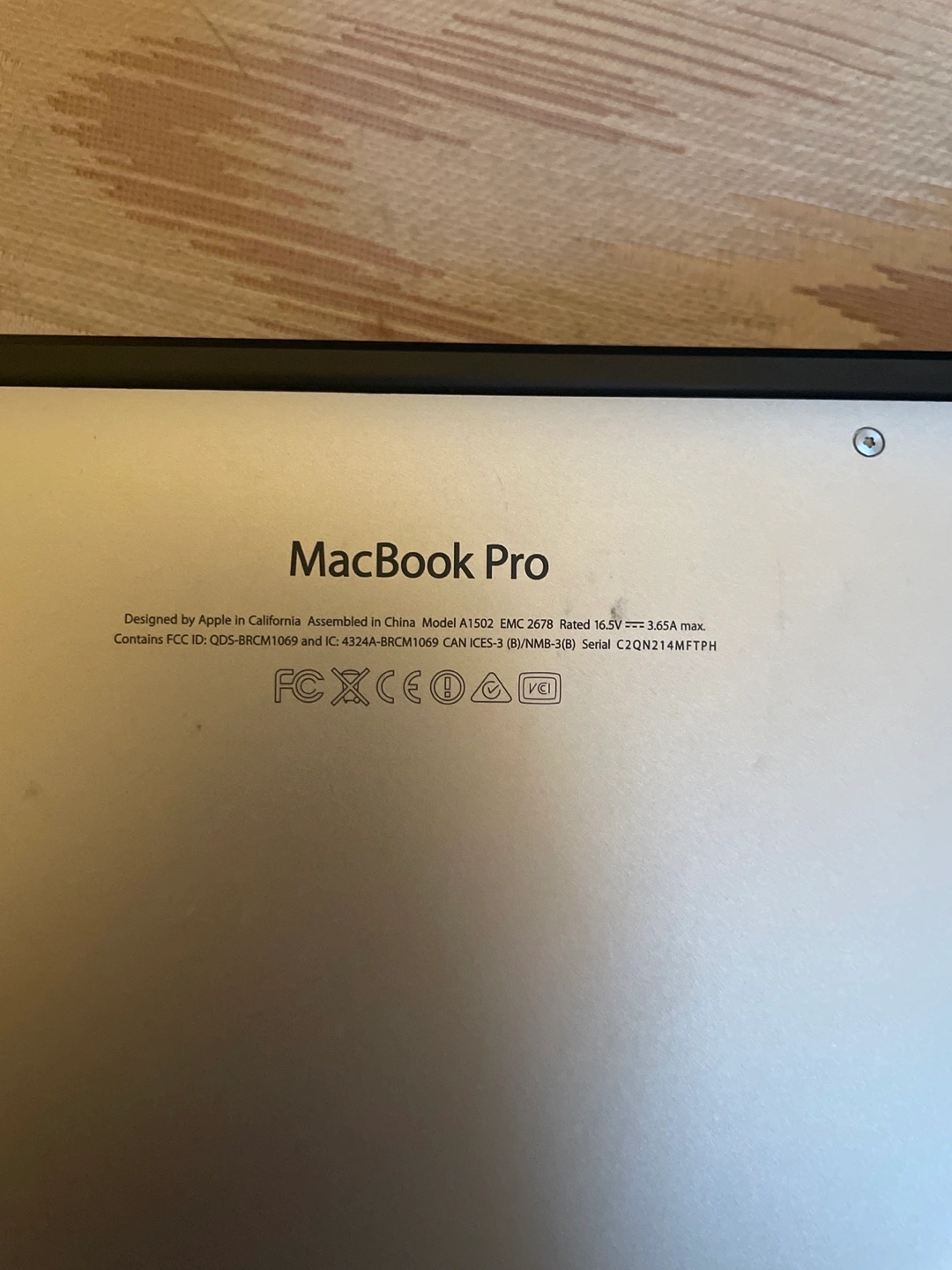 61Used MacBook Pro laptop. Model A1502. Silver .Some minor wear and tear. Very good condition No Cracks or Dents Charger is included and in good condition Late 2013 4 GB can be upgraded to 8 or 16 GB
