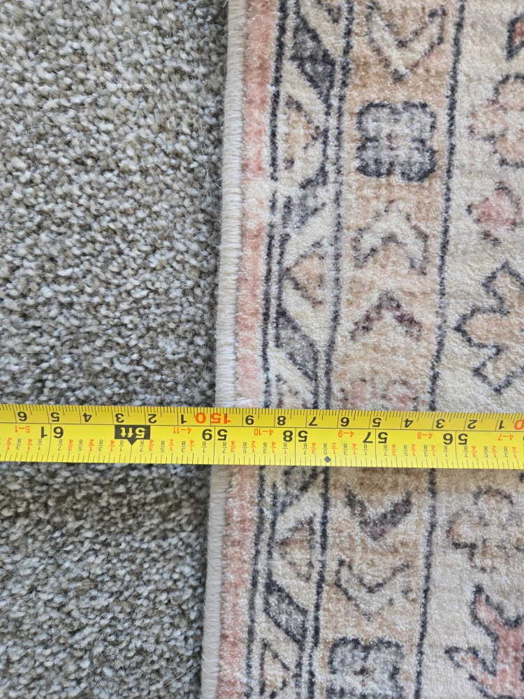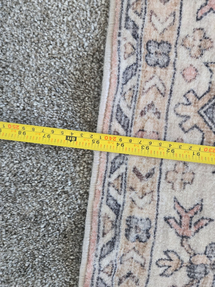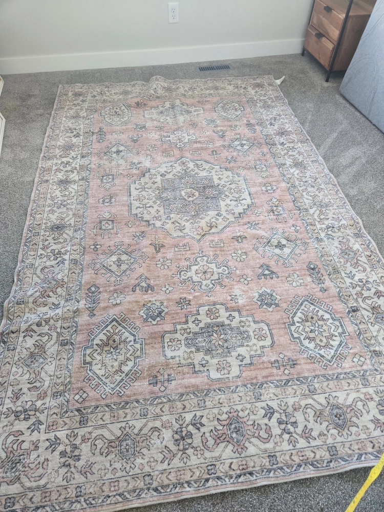 Selling a lovely area rug in beige and pink tones. It measures approximately 5 feet by 8 feet. Perfect for adding a touch of warmth and style to any room! very soft, brand new.