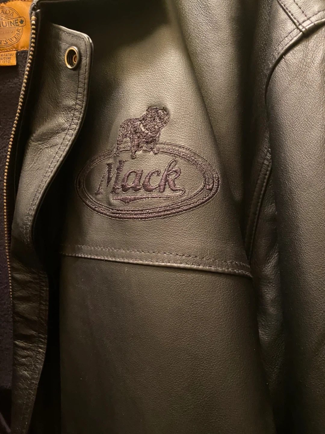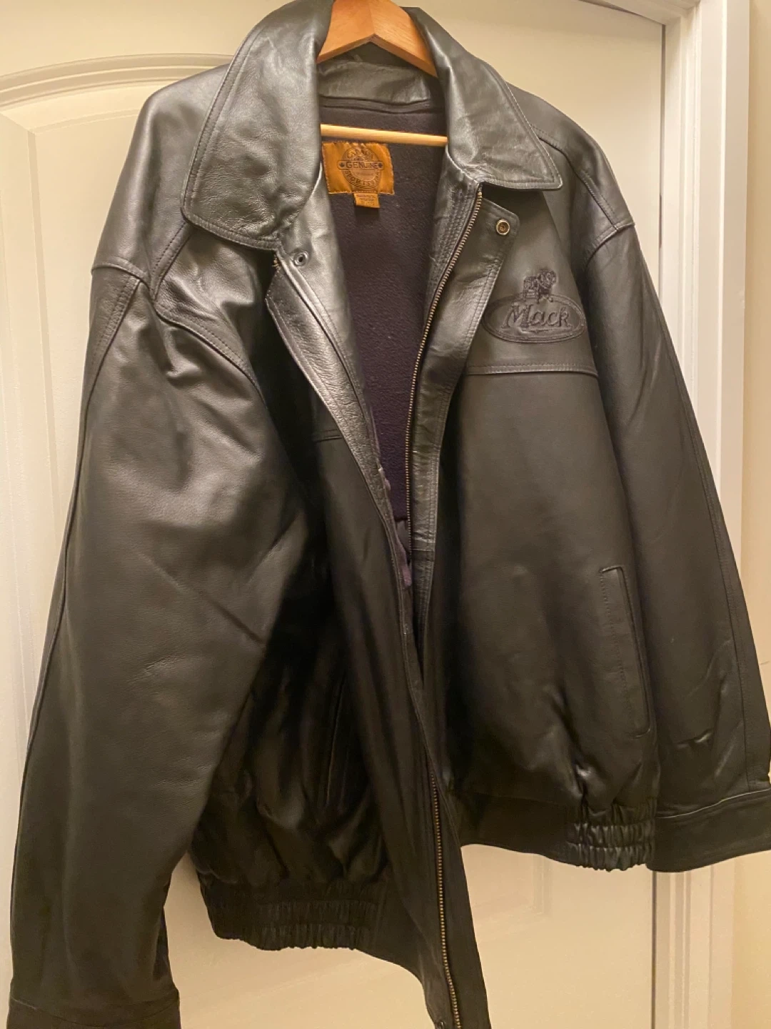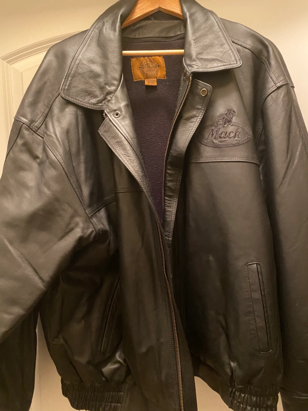 10Selling a gently used Mack Canada Genuine Sportswear leather jacket! It's a size 3XL and made of leather, perfect for staying warm and stylish. The jacket features the Mack logo. It's in great shape and ready for a new home