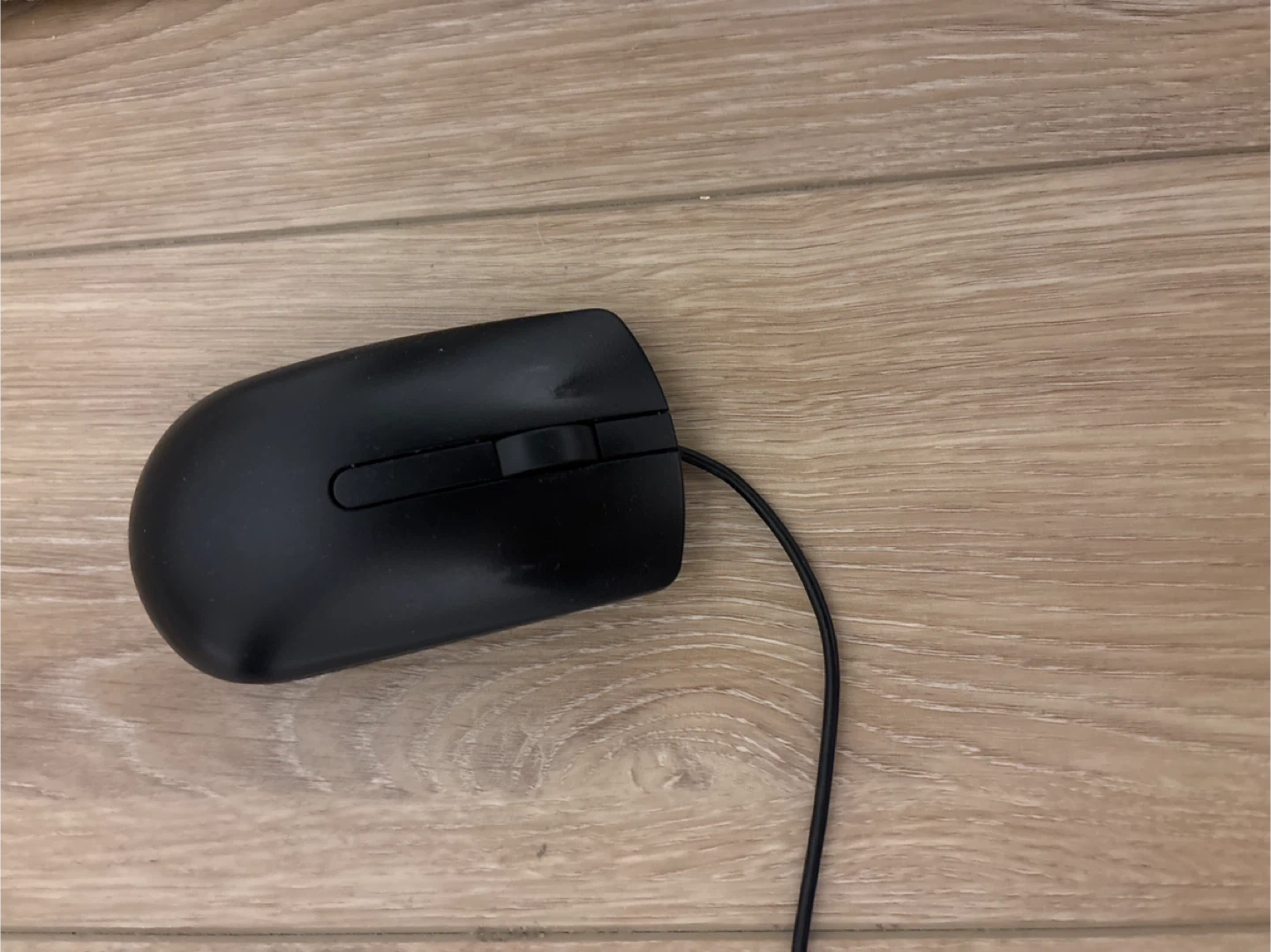 A standard wired computer mouse in black. It's a simple, functional peripheral for everyday computer use. Plug and play design.