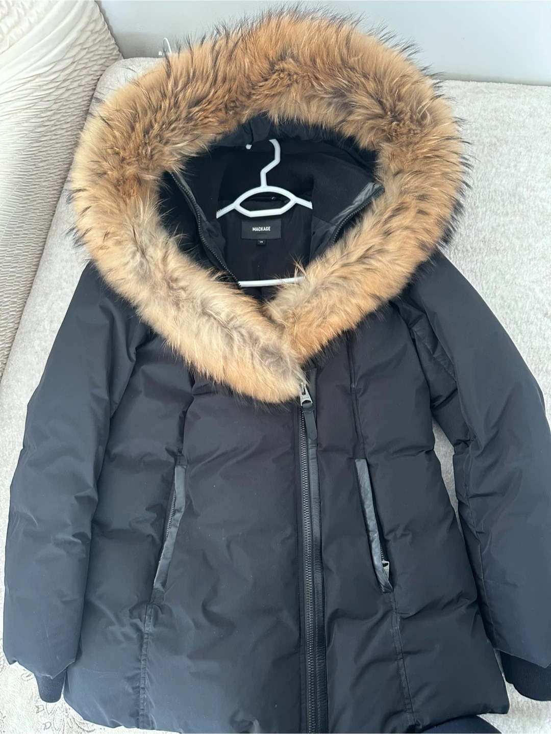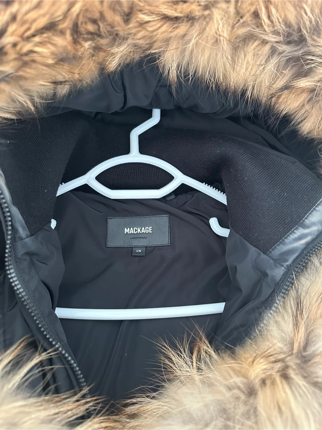 10Selling a gently used Mackage Montreal down winter jacket in black. It's a size L and features a stylish fur-trimmed hood. Perfect for staying warm during those cold Canadian winters!