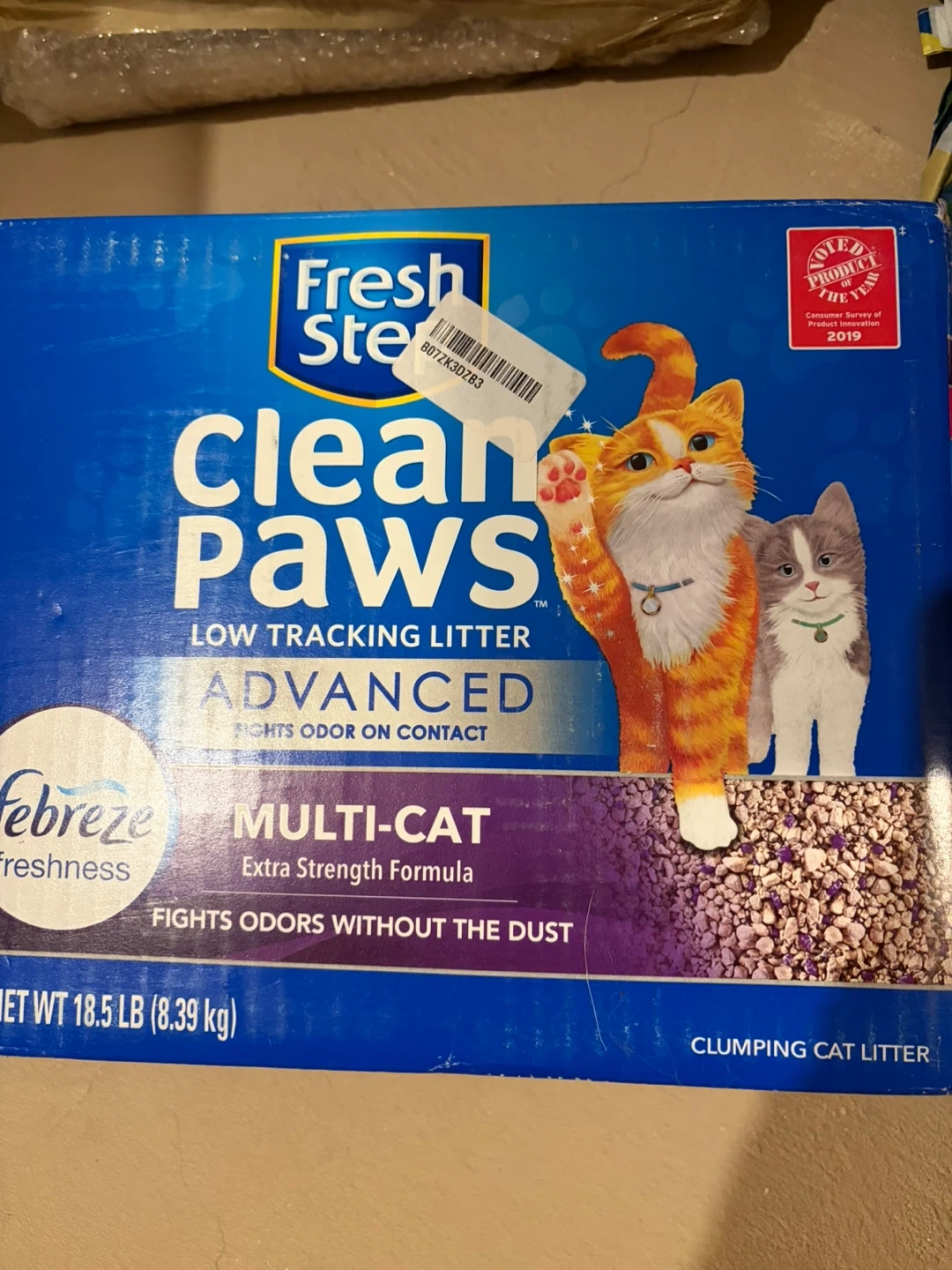 Fresh Step Clean Paws Advanced Multi-Cat clumping litter offers extra strength odour control. It fights odours without producing dust. This formula is low tracking and designed for multiple cats.
