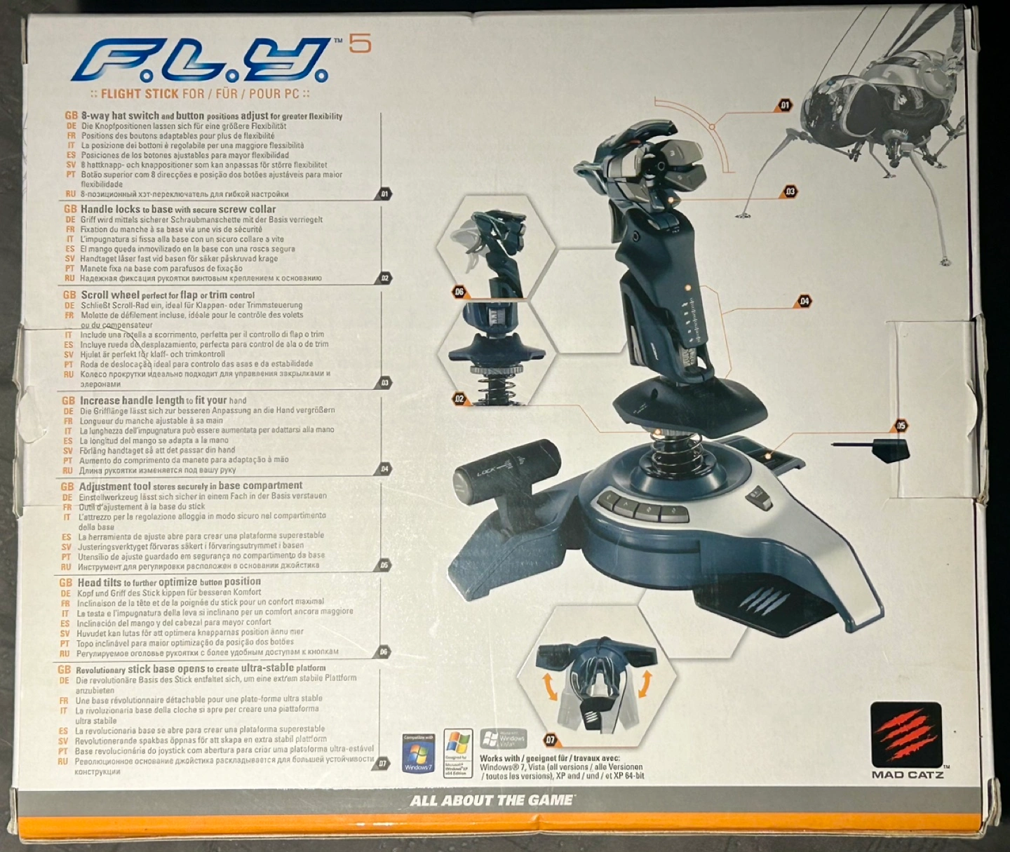 160The Mad Catz Saitek Cyborg X Joystick For PC FLY 5 is a flight stick joystick designed for PC gaming. It features a wired connectivity and is compatible with various PC models. The joystick is black in color and has a model number of FLY 5. It is manufactured by Saitek and is a part of the Cyborg X Stick series. New in box. Moving sale. See my other items. Pick up in Rundle, NE Calgary. If listed it is still available!