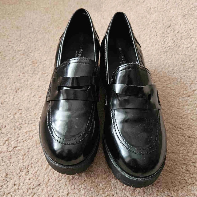 10Like new. Shiny black. Rarely worn. Smoke free home. Size 10.5M.