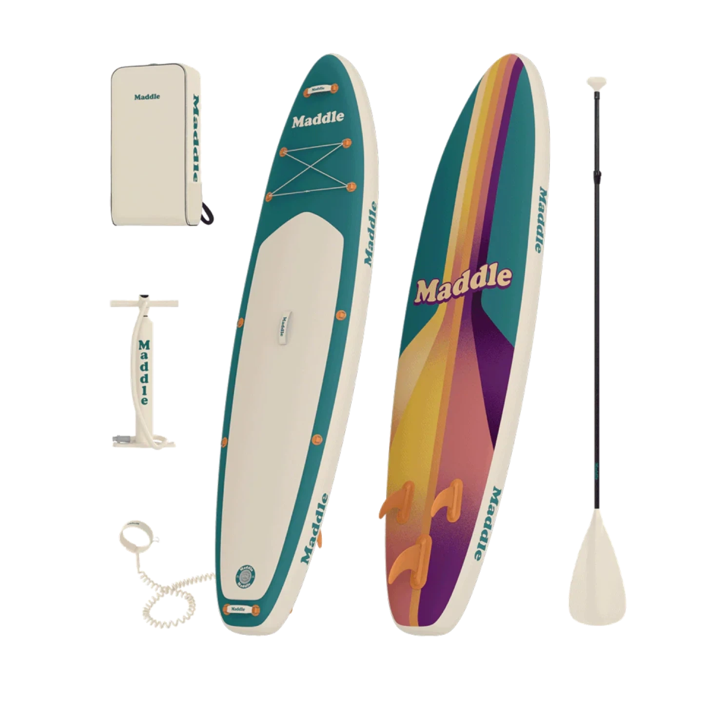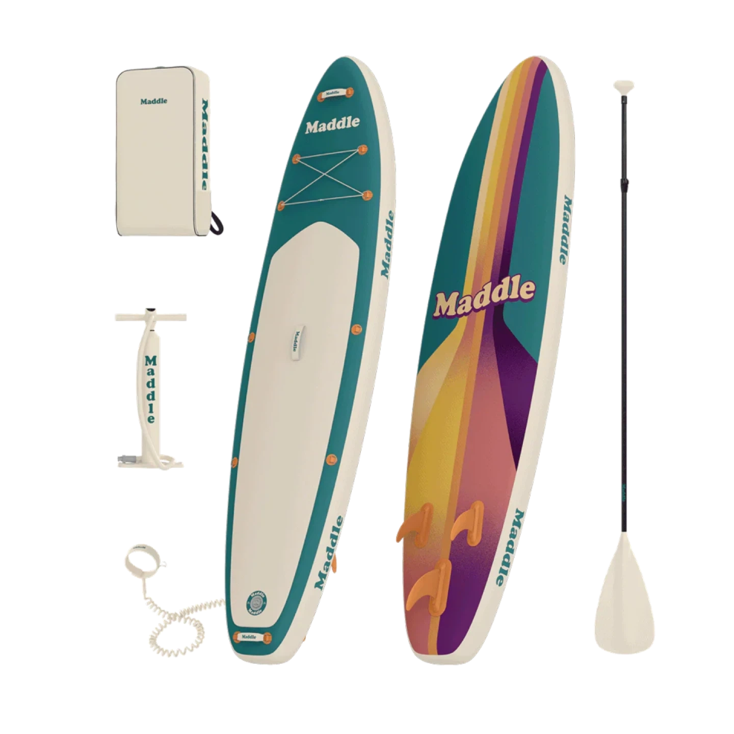 Get ready for summer fun with this Maddle inflatable stand-up paddle board! It comes with everything you need to get started, including the board, paddle, pump, leash, and carrying bag. Perfect for exploring lakes, rivers, or calm ocean waters— used once ✨