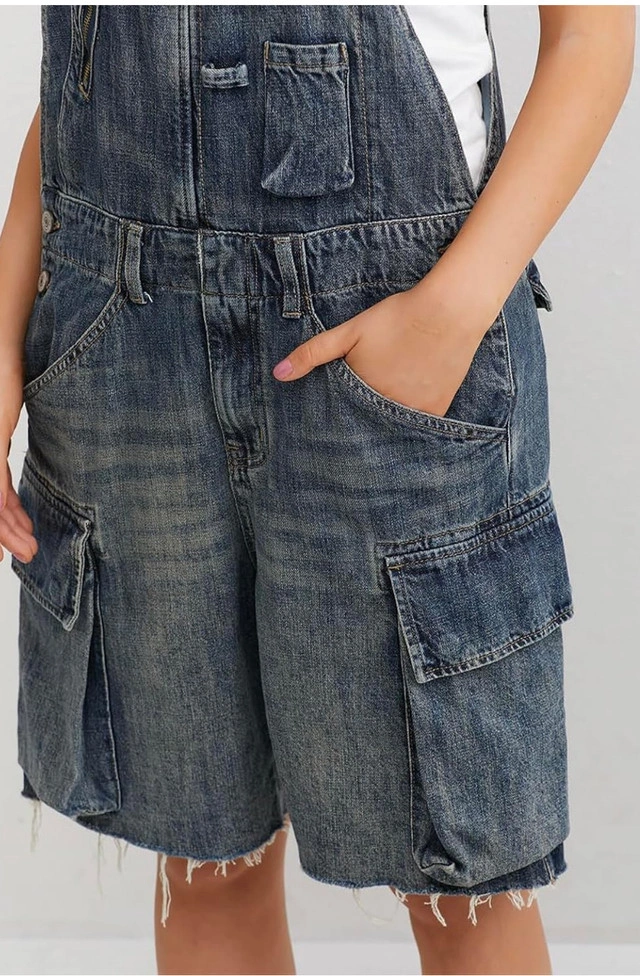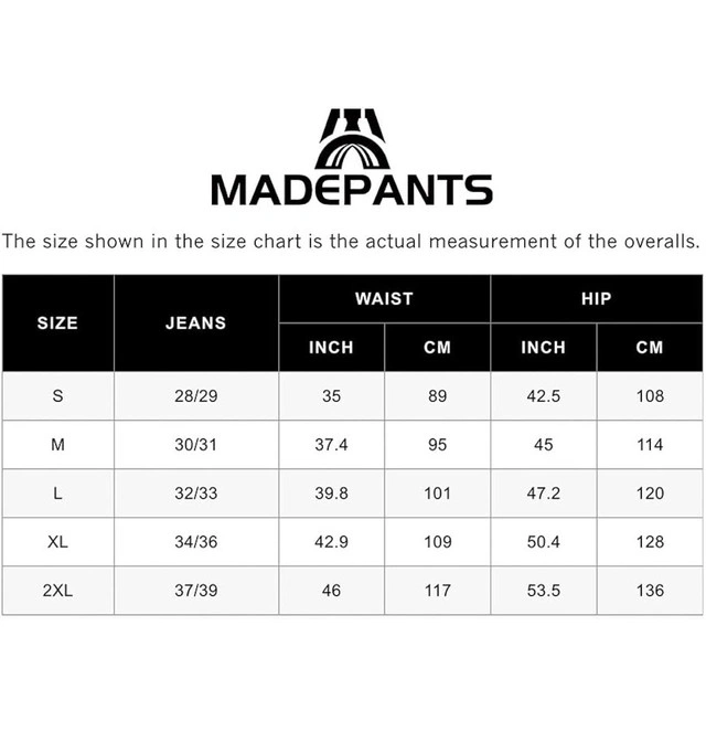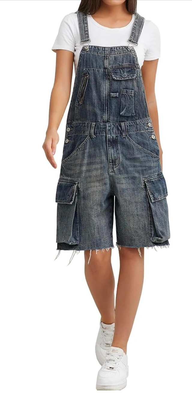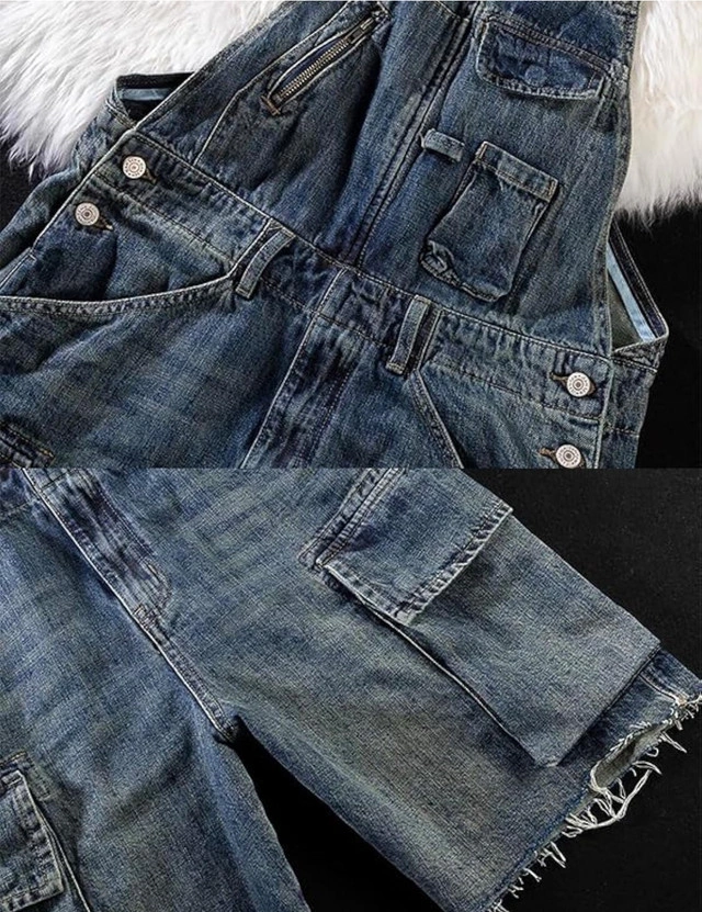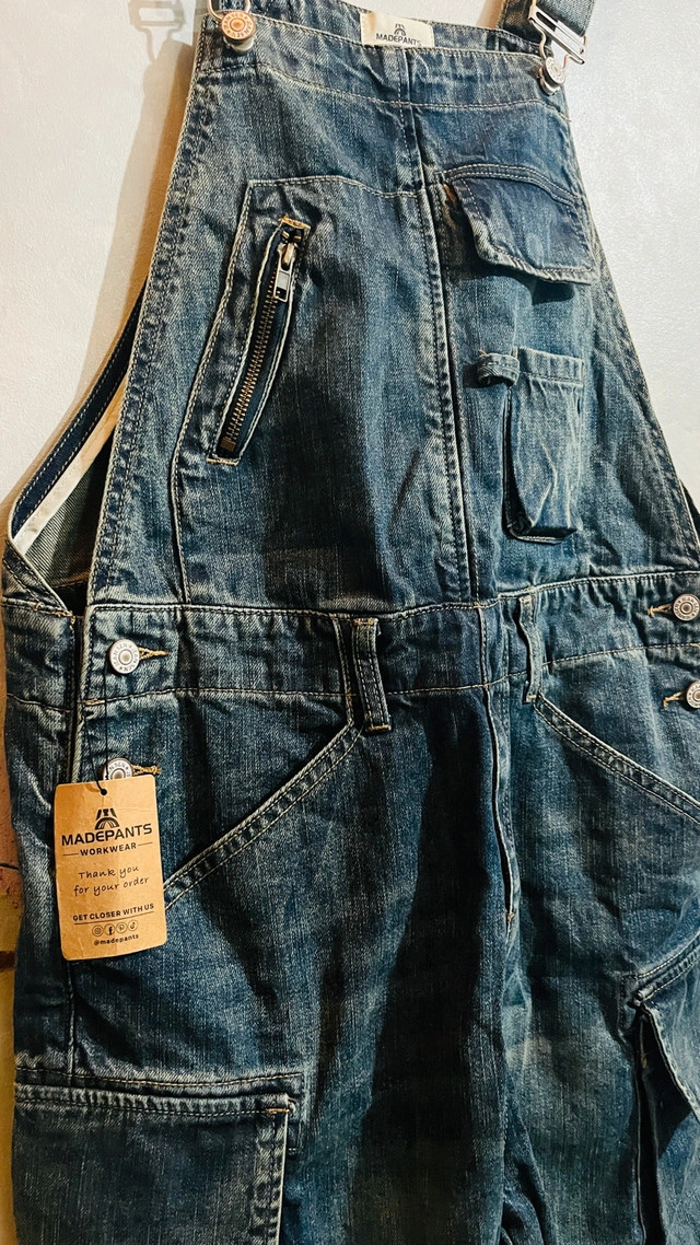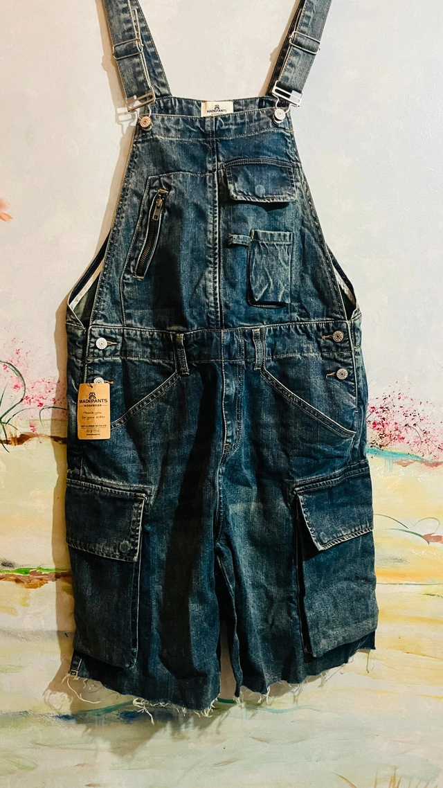 These brand new Madepants denim short overalls Featuring a cool, vintage-inspired wash, multiple pockets, and a relaxed fit, they're perfect for casual outings and fun adventures. One large chest pocket with a zipper and flap detail. Two side pockets for convenience. Two spacious cargo pockets on each leg for extra storage. Two back flap pockets for added utility. Relaxed, loose-fitting silhouette for maximum comfort Specifications: * Brand: Madepants * Style: Denim Short Overalls * Size: See size chart in photos. * Condition: Brand New * Material: Denim * Colour: Blue Denim Wash *****Retail price over $80***** pick up is in Brampton near Sheridan College Davis campus.