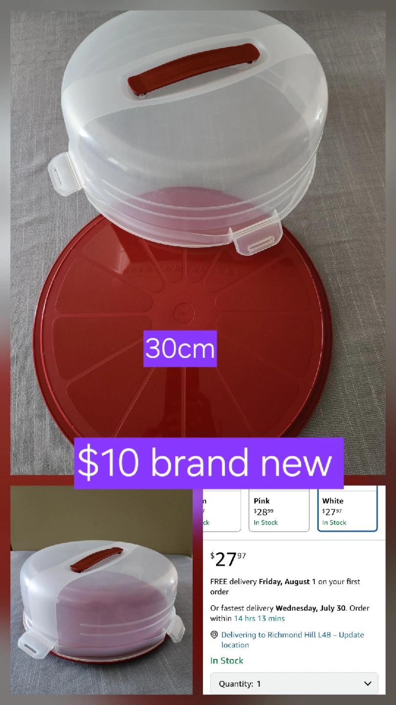 15- A lightly used Madesmart silverware tray. - A brand new cake carrier, 30cm. - A brand new folding tray