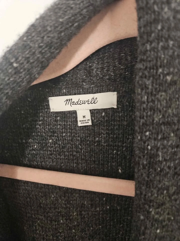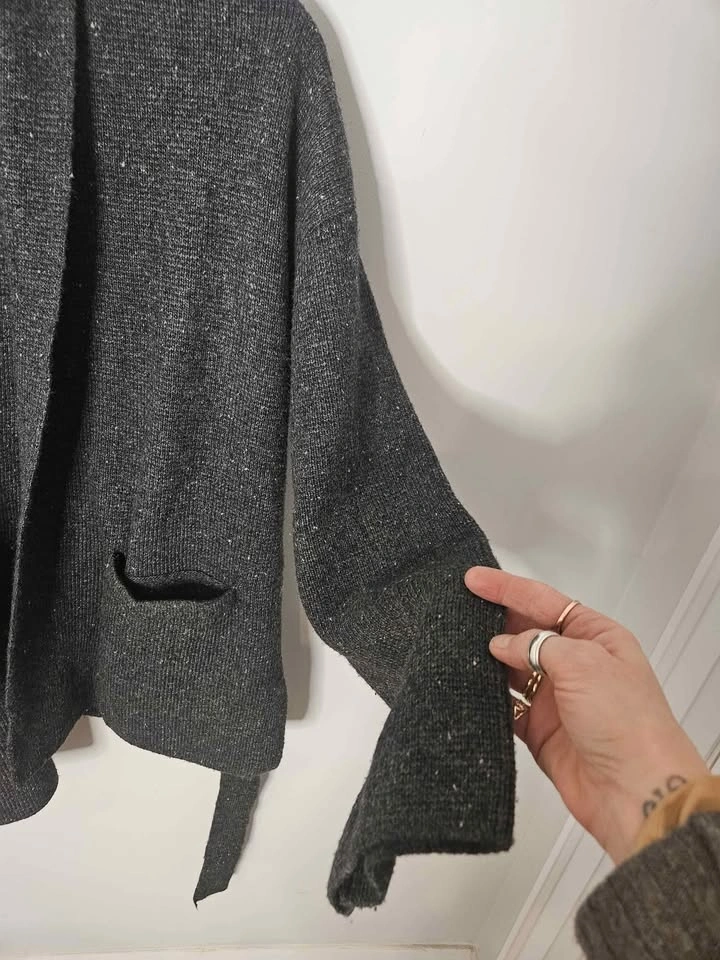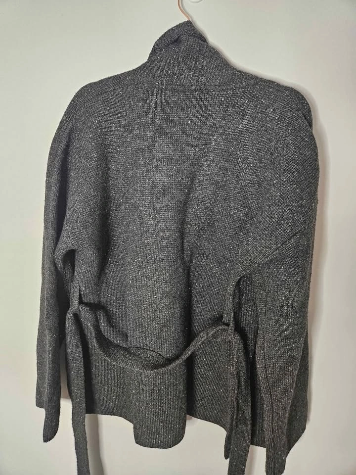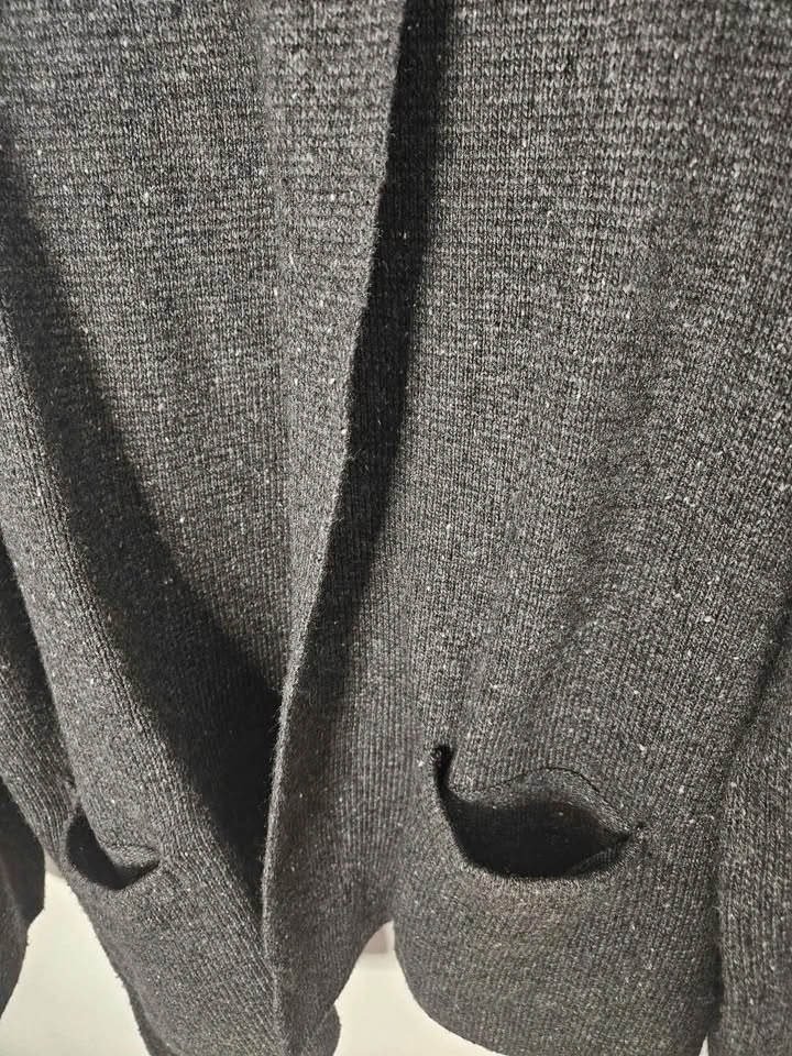 71Worn maybe 2 times. Size medium Pockets and straight arms. Thicker material. Wool blend not itchy or bulky.