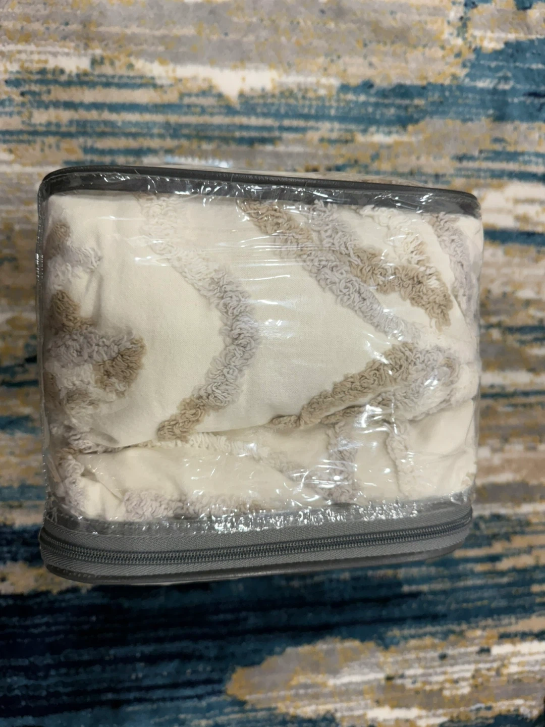 10Snuggle up with this beautiful Madison Park Laetitia 3-piece cover set! It's brand new and still in its original packaging. - Brand: Madison Park - Model: Laetitia - Size: Queen - Colour: Violette Ivory/Taupe - Includes: 2 shams