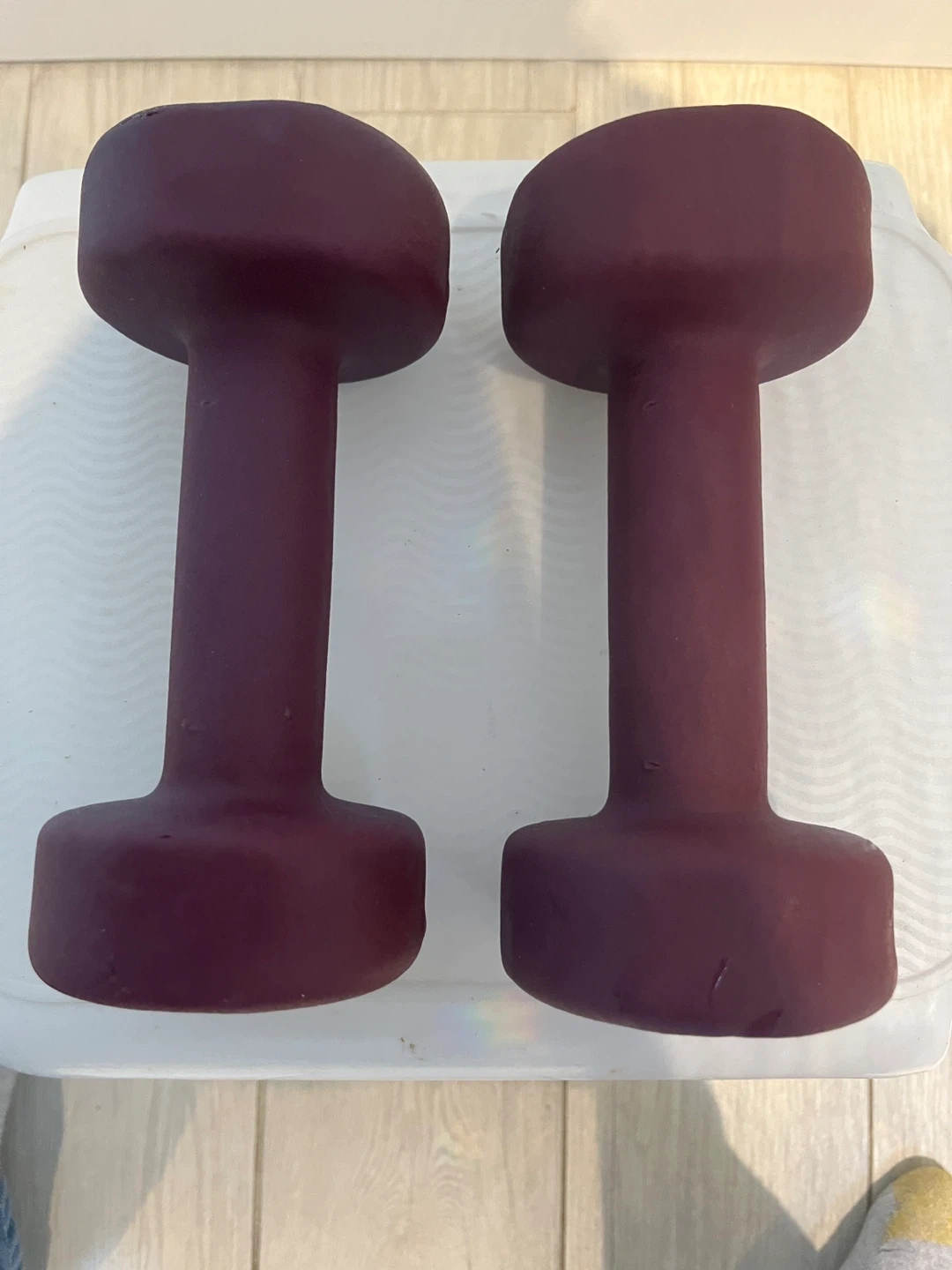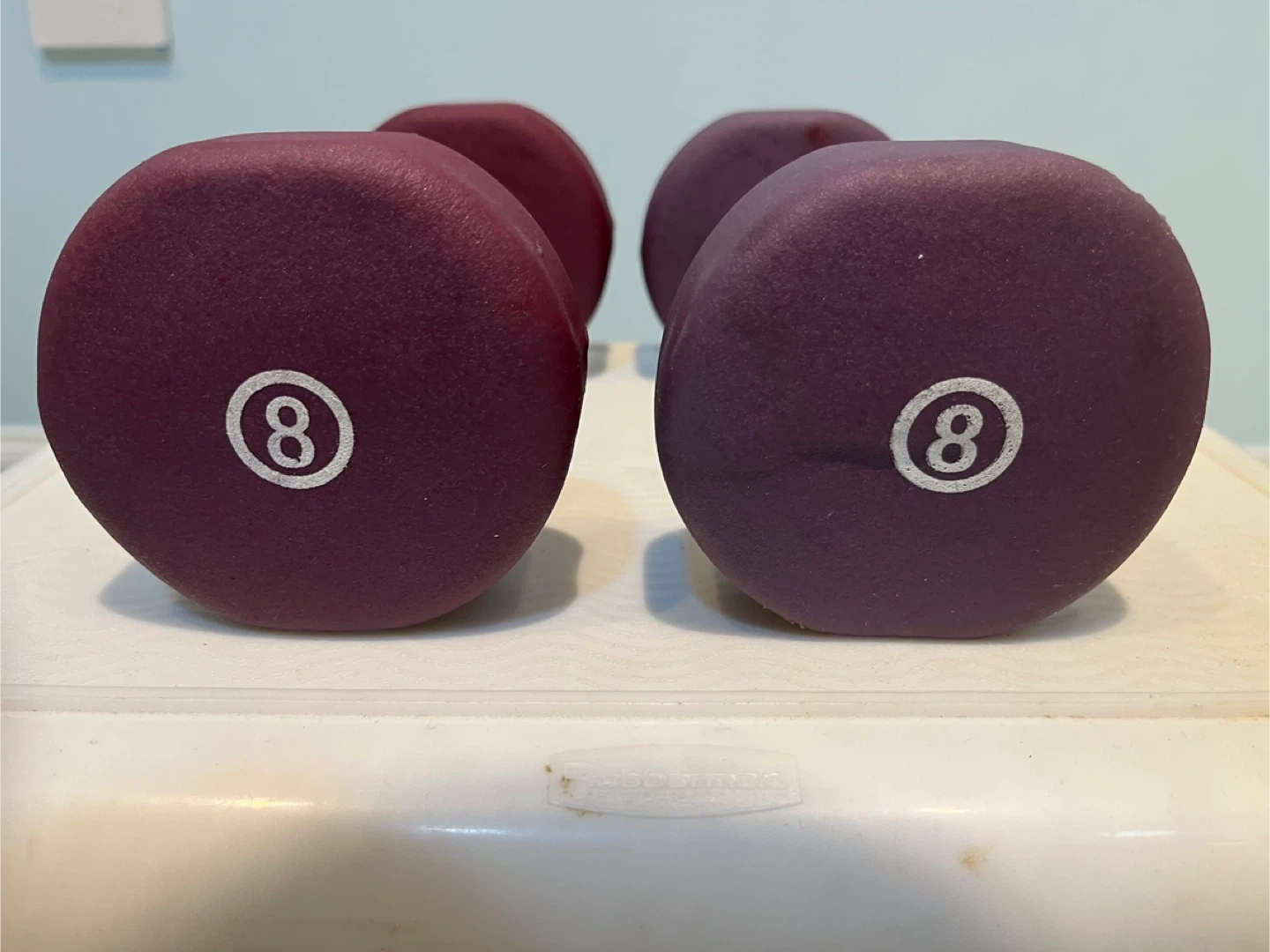 Selling a set of MADOG 8 lb dumbbells. These are great for home workouts and are in good condition. They have a neoprene coating for a comfortable, non-slip grip. Overall size is 7.5" x 3.8" x 3.5". Set Retails for $32.99.