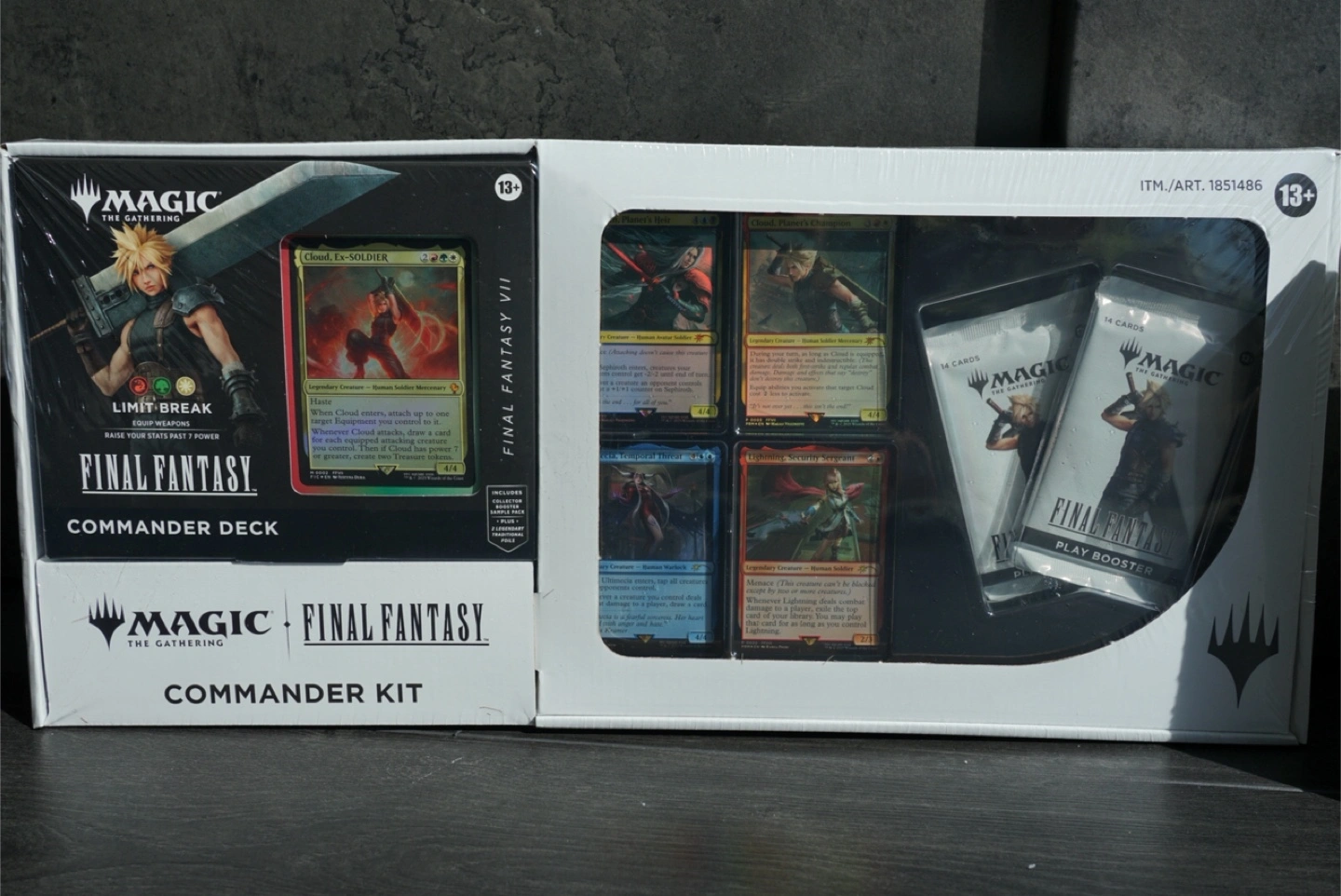 Selling a Magic The Gathering Final Fantasy Commander Deck! This kit includes: - Commander Deck - Collector Sample Pack - 2 Legendary Token Foils - 14 Cards Play Booster