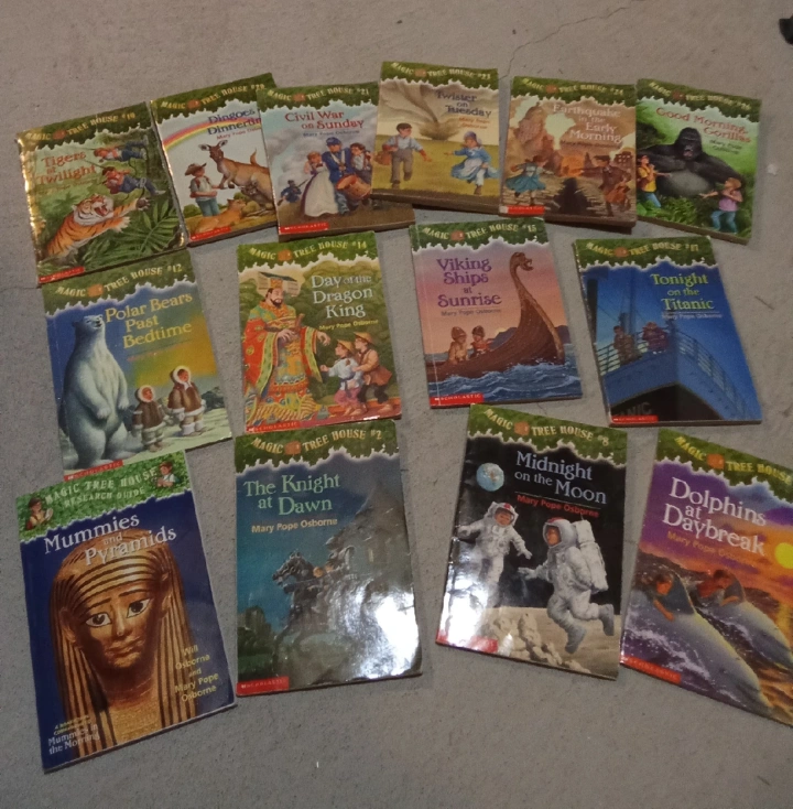 126Selling a collection of Magic Tree House books by Mary Pope Osborne! Great for young readers and fans of the series. Titles include: - Twister on Tuesday - Earthquake in the Early Morning - Good Morning, Gorillas - Viking Ships at Sunrise - Tonight on the Titanic - Civil War on Sunday and more! $4 each or $50 for the entire lot