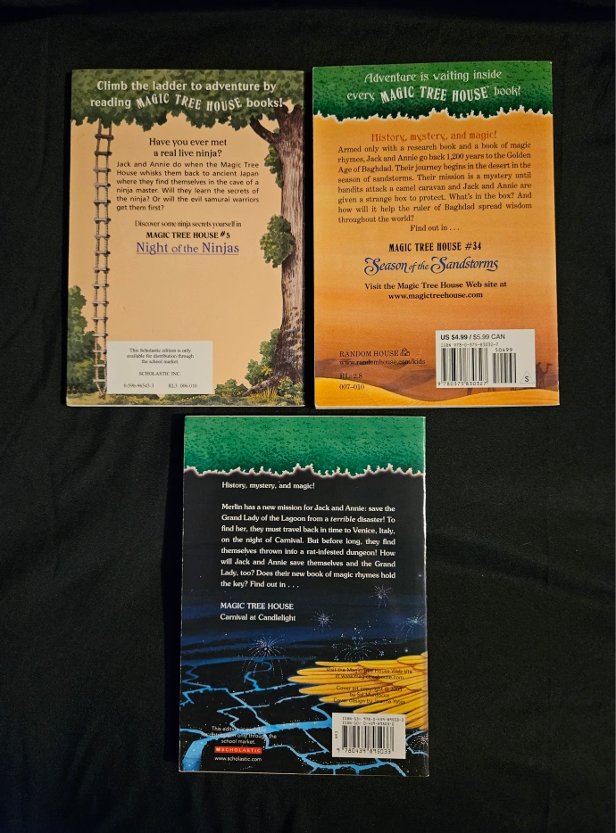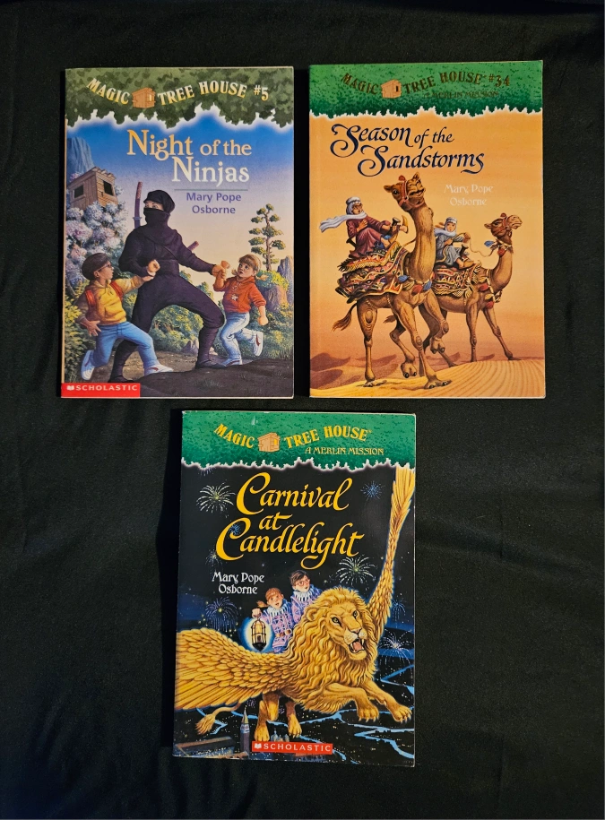 Magic Tree House Book Lot in good/very good used condition. Price includes all three: Night of the Ninjas (#5) Season of the Sandstorms (#34) Carnival at Candlelight. Milton pick up, cash only, no holds.