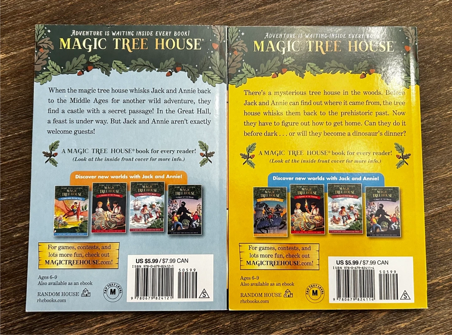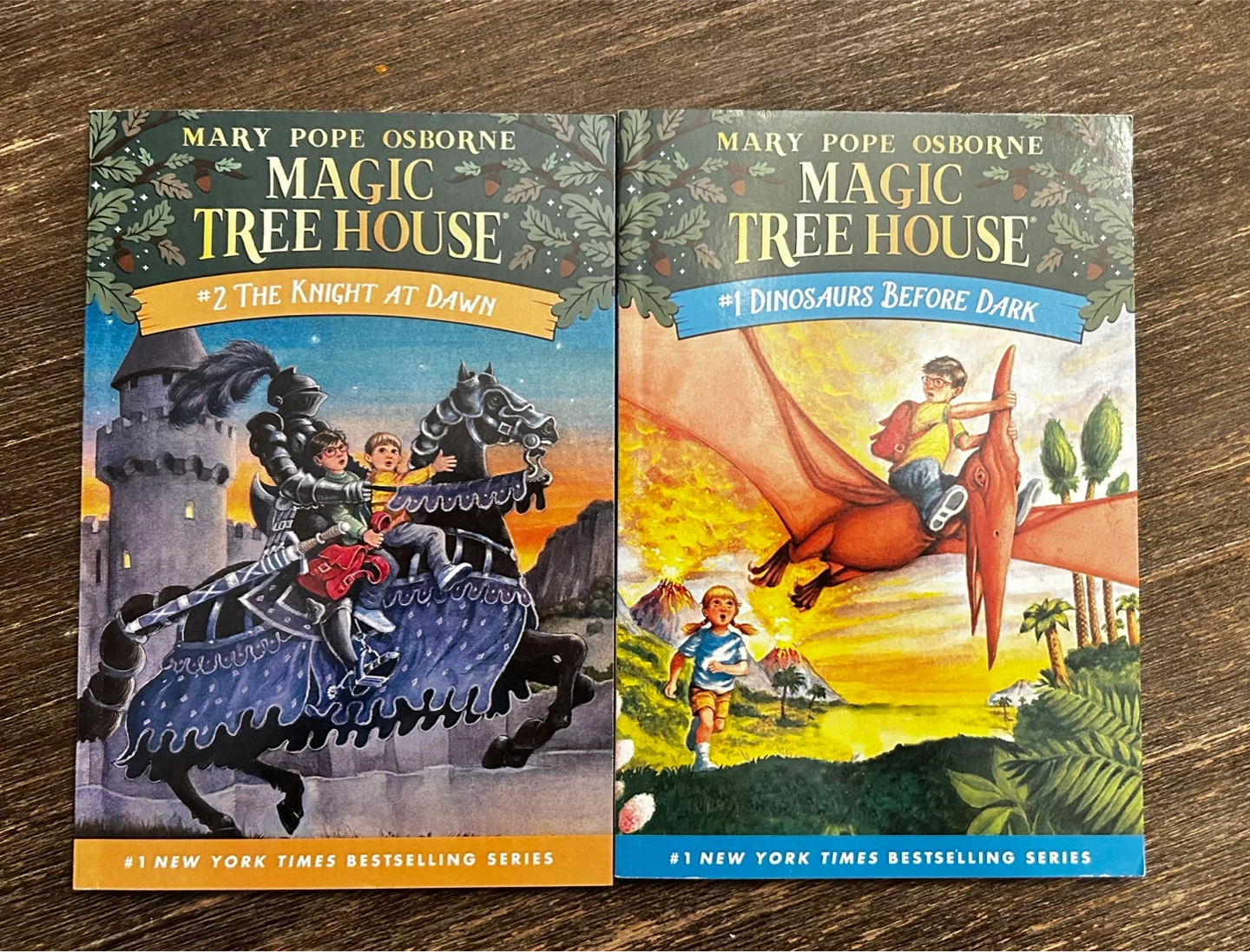 54Selling the first two books in the Magic Tree House series by Mary Pope Osborne: - #1 Dinosaurs Before Dark - #2 The Knight at Dawn Perfect for young readers aged 6-9!