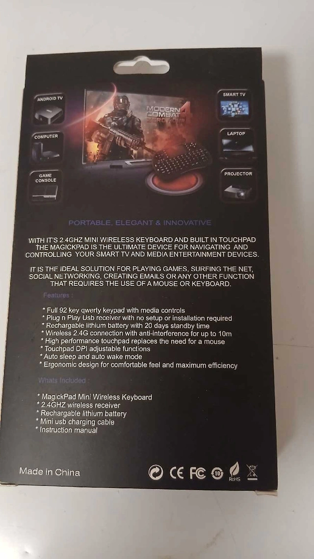 83Introducing the MagickPad Wireless 2.4Ghz Mini Keyboard, the perfect solution for navigating and controlling your smart TV or home media centre. This item is in new condition, still in its original packaging, ready to enhance your media experience with its compact design and comprehensive functionality. Key Features: * Wireless 2.4GHz connectivity for seamless control. * Compact mini keyboard layout for easy typing and navigation. * Ideal for smart TVs and home media centres. Looking for a way to streamline your media control? This keyboard is your answer! If the ad is up, it's still available!