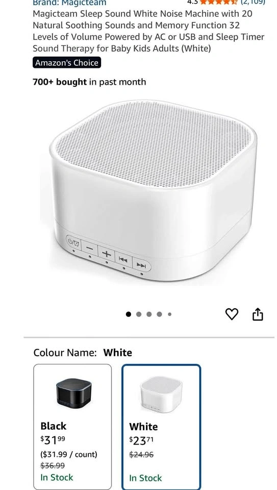 414New, open box, Magicteam Sleep Sound White Noise Machine with 20 Natural Soothing Sounds and Memory Function 32 Levels of Volume Powered by AC or USB and Sleep Timer Sound Therapy for Baby Kids Adults (White) Retails for $23.71 on sale on Amazon Asking $12 Pickup near danforth and coxwell