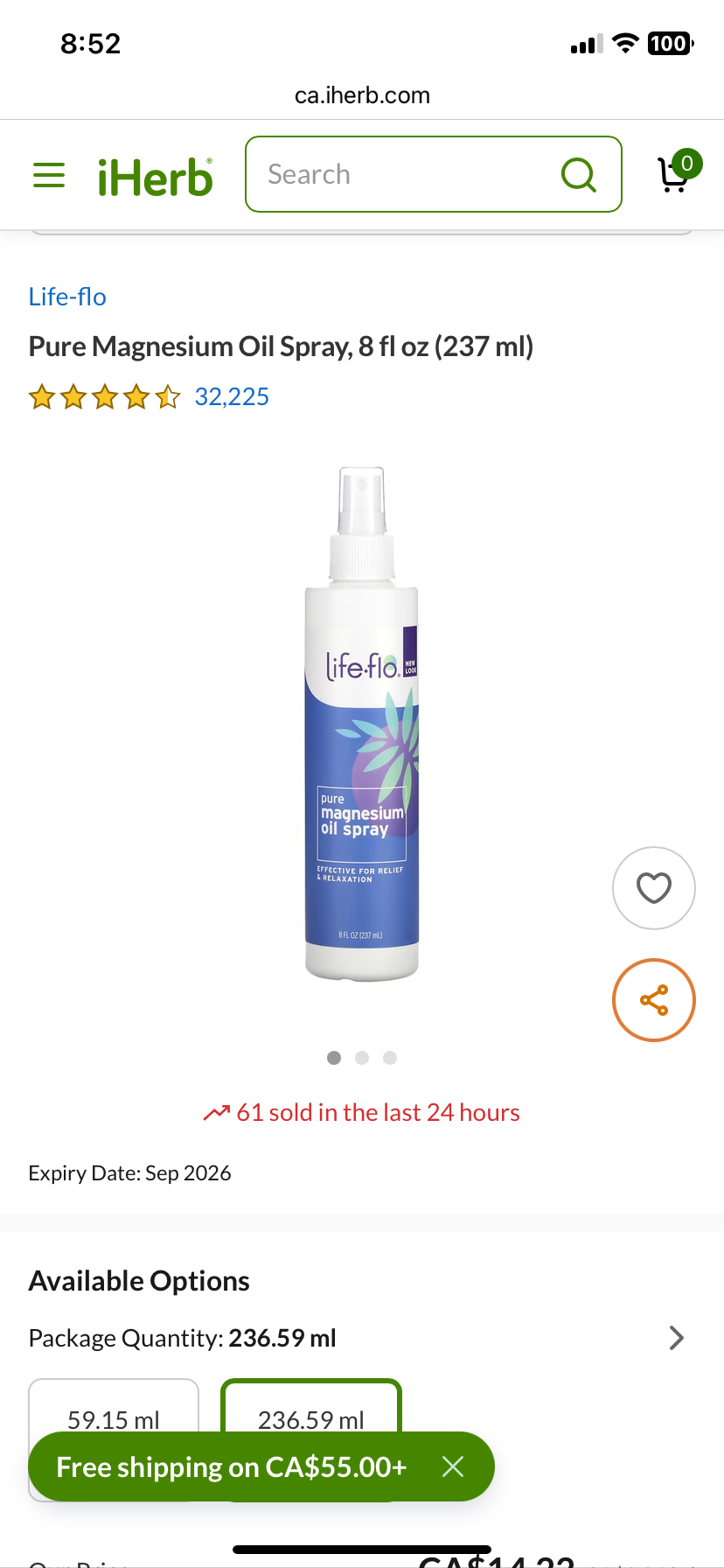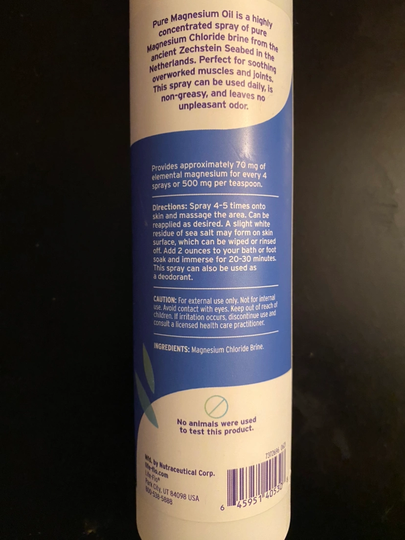 370Life Flo pure magnesium oil spray. 8oz 237 ml bottle almost full.