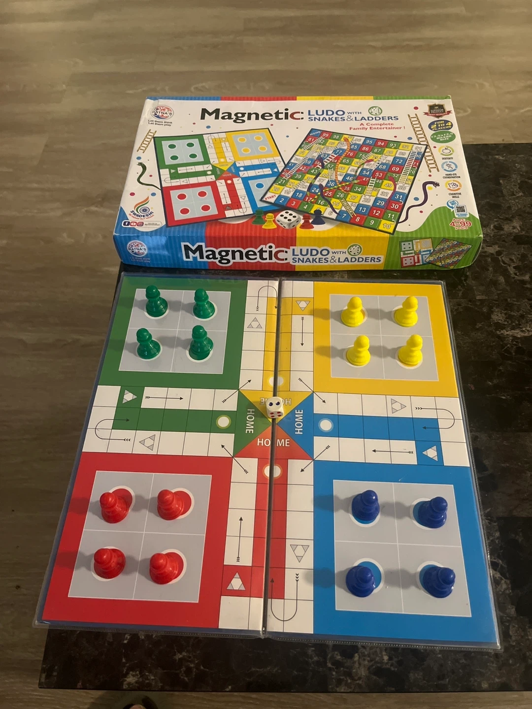 Selling a Magnetic Ludo with Snakes and Ladders board game! It's a complete family entertainer for 2 to 4 players. This game combines coordination, cognitive skills, and dexterity for a fun and engaging experience