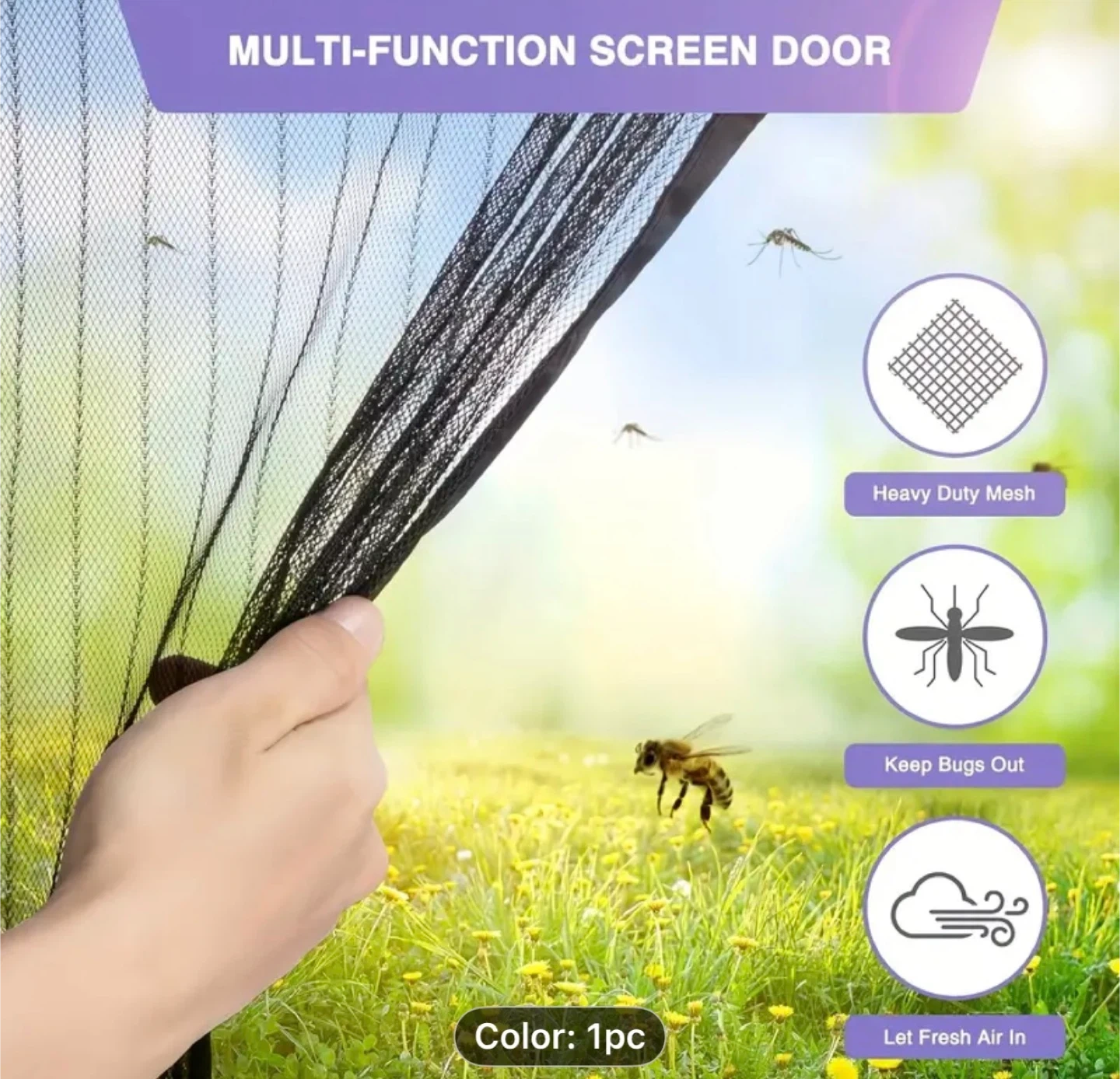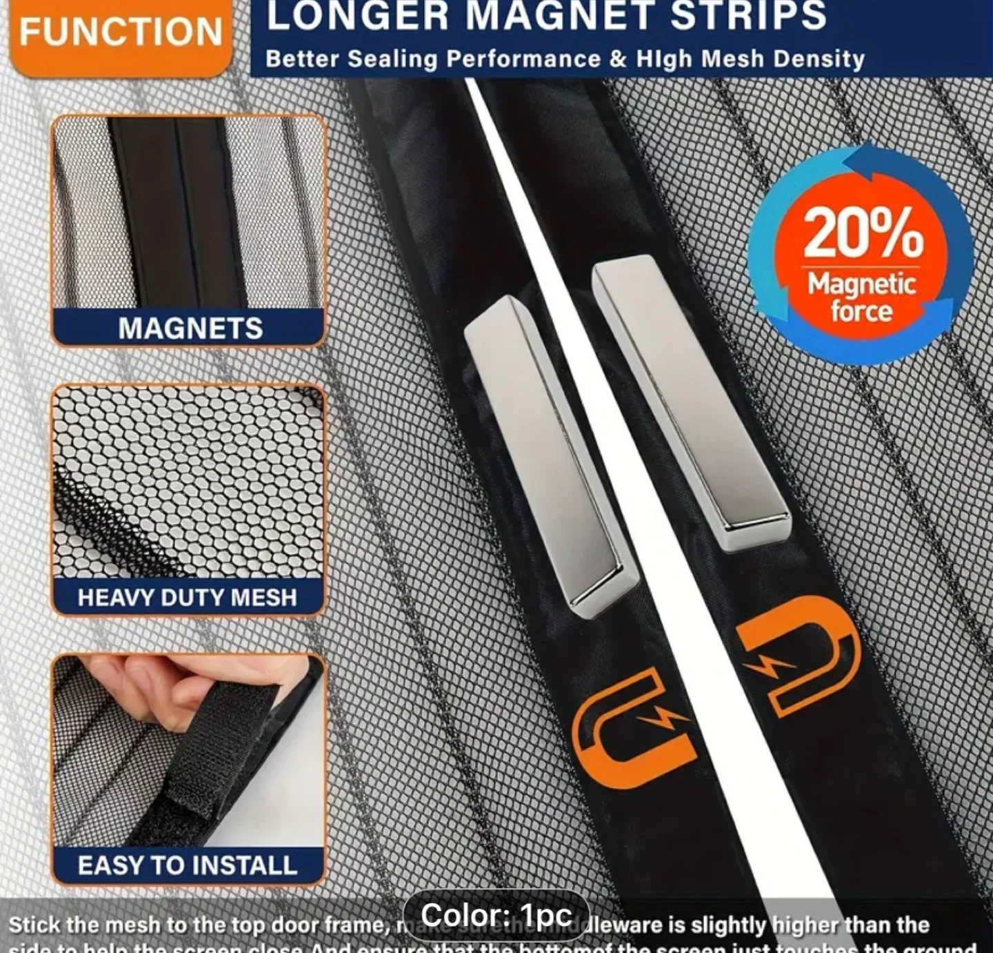 95Keep the bugs out and let fresh air in with this handy magnetic screen door! It features a heavy-duty mesh and longer magnet strips for better sealing performance. Easy to install and allows for hands-free entry, perfect for pets and kids. Dimensions are approximately 90cm x 210cm (35.43inch x 82.68inch)