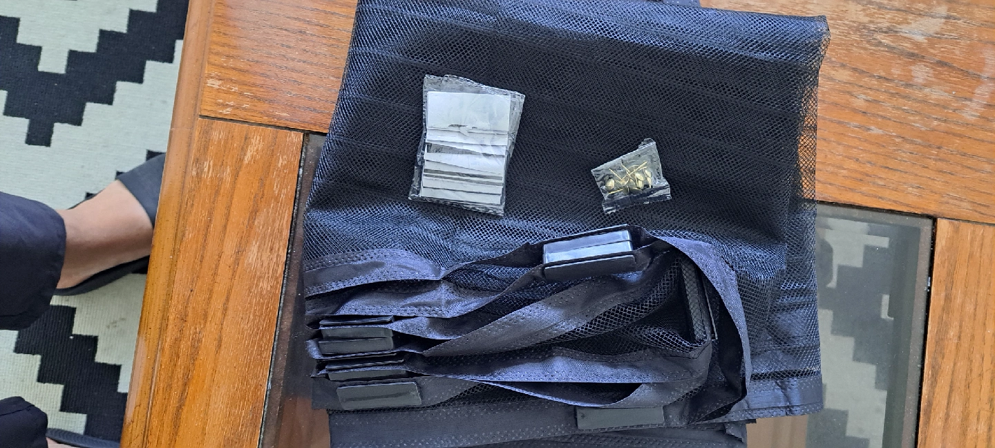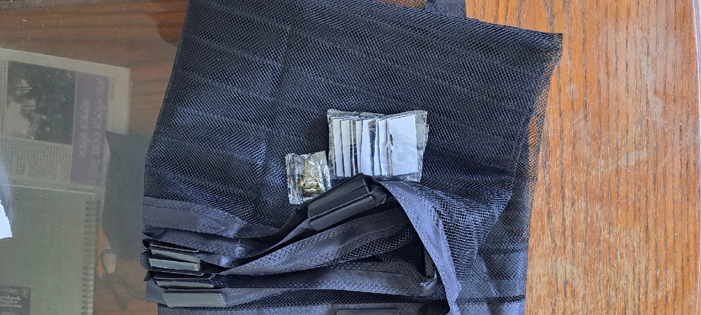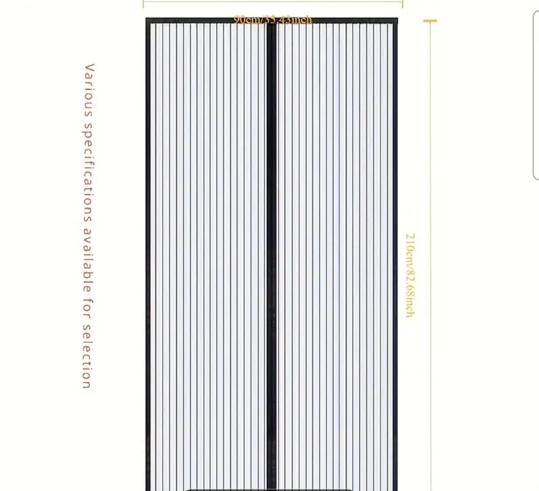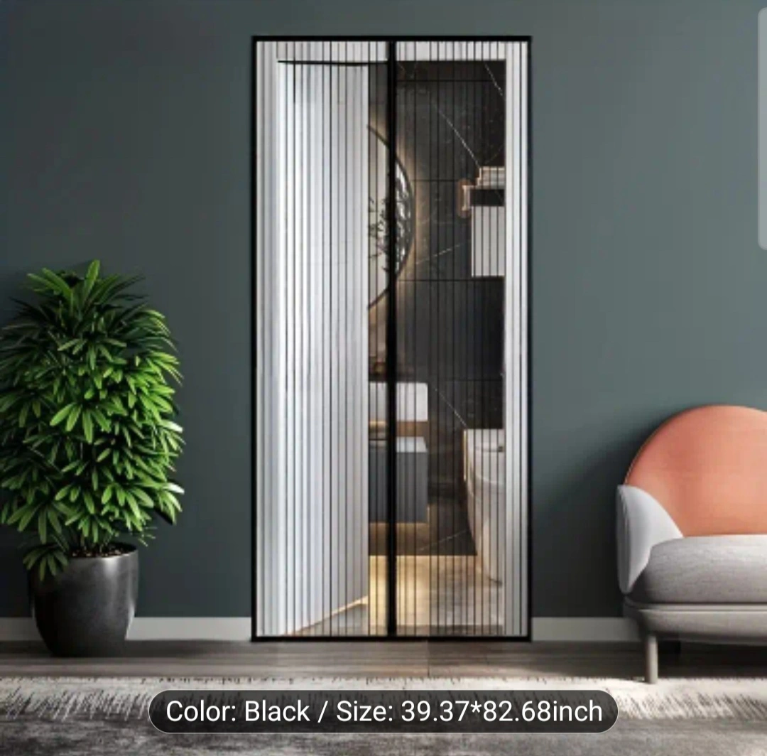 Keep those pesky bugs out with this magnetic screen door! It's black and measures 39.37 x 82.68 inches. Easy to install and perfect for letting fresh air in while keeping the insects out