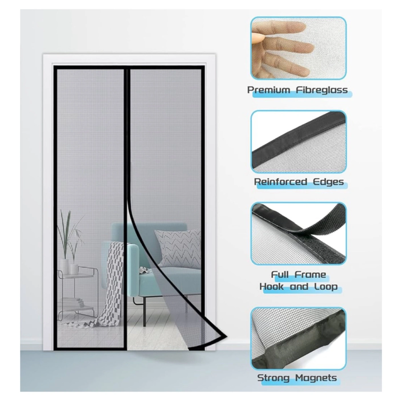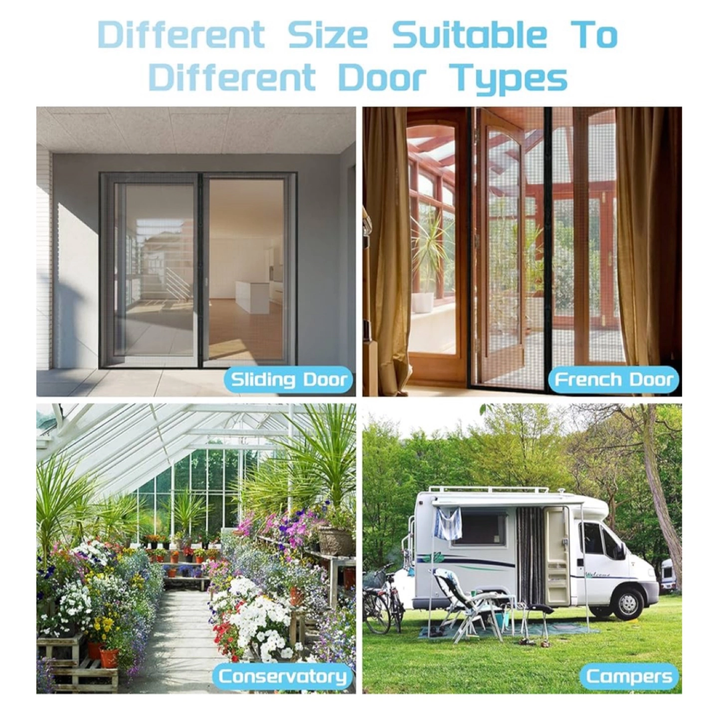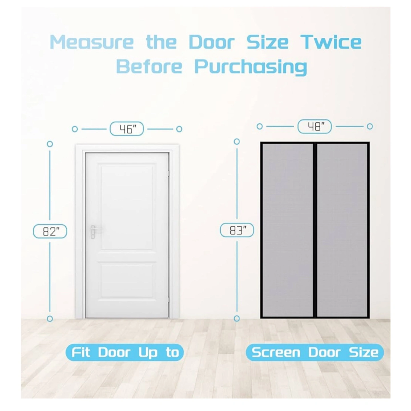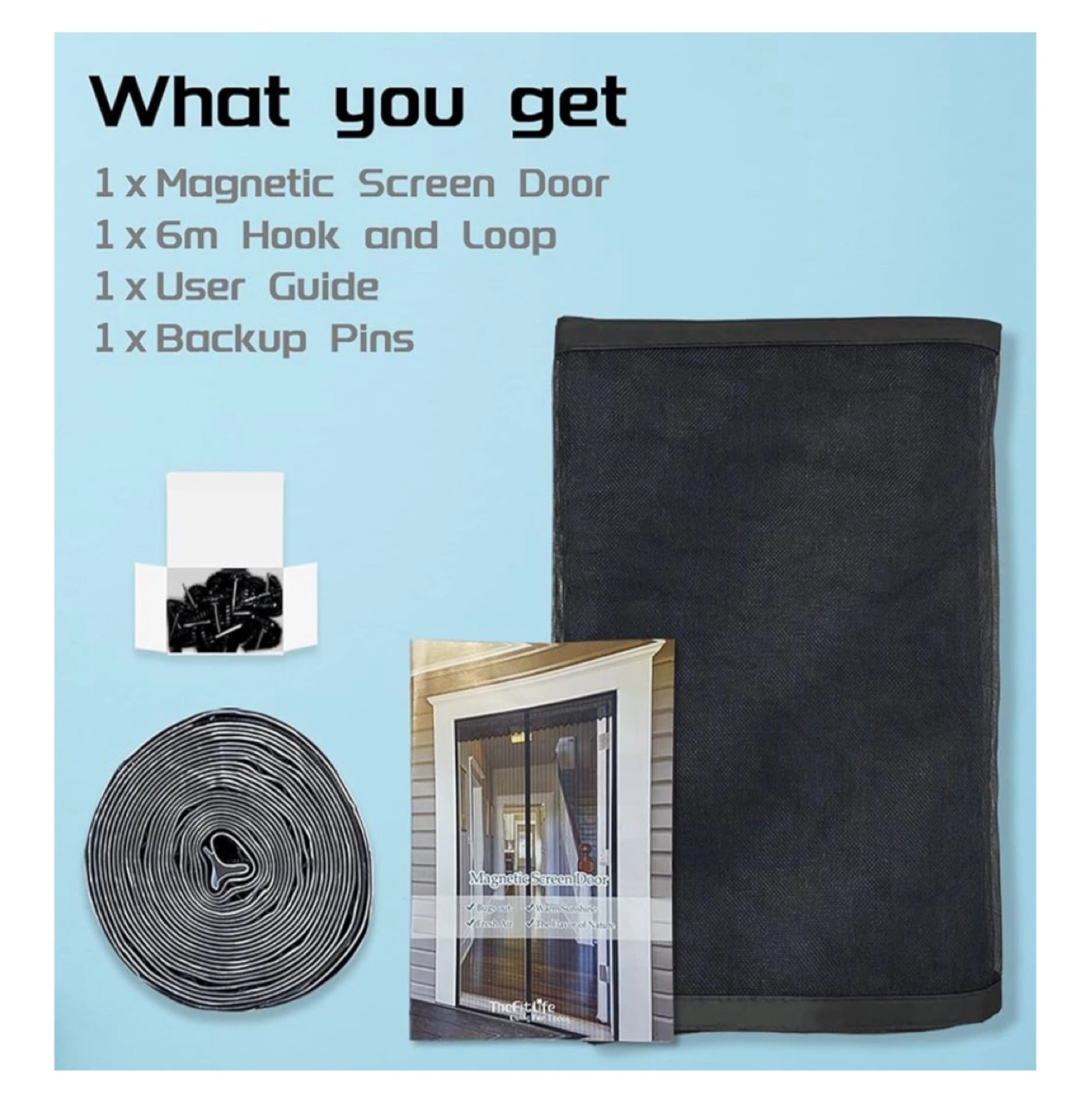 Keep the bugs out with this magnetic screen door! It's designed to fit doors up to 46" x 82". It's super easy for kids and pets to walk through. What you get: - 1 x Magnetic Screen Door - 1 x 6m Hook and Loop - 1 x User Guide - Backup Pins
