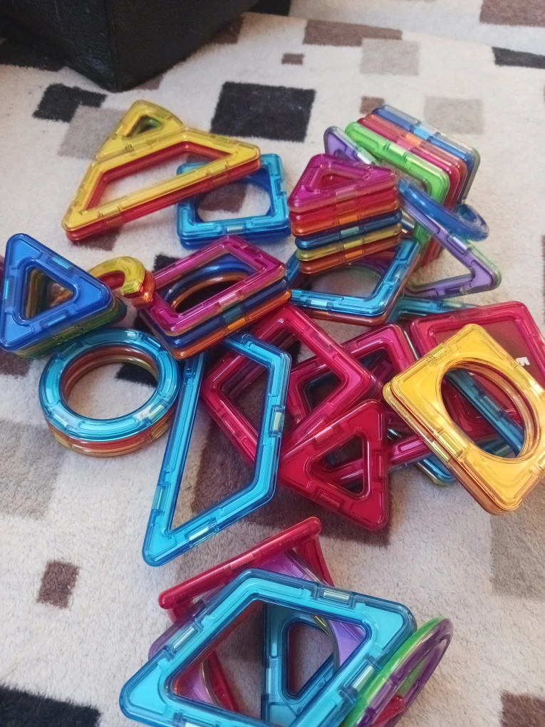 1000+Selling a set of magnetic building tiles! These colourful tiles come in various shapes like triangles, squares, and more, perfect for creative play and building fun structures. They're in great condition and ready for a new home to inspire imagination